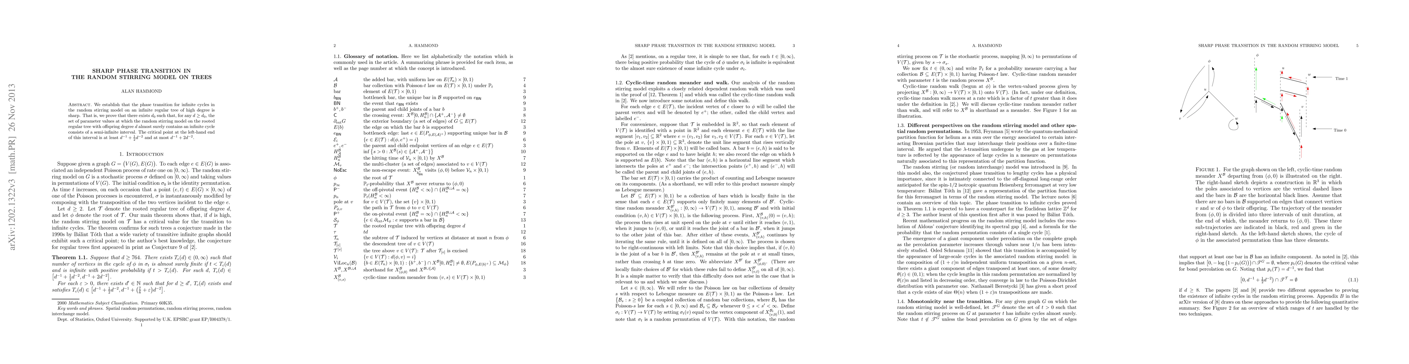 We establish that the phase transition for infinite cycles in the random stirring model on an infinite regular tree of high degree is sharp. That is, we prove that there exists d_0 such that, for any d \geq d_0, the set of parameter values at which the random stirring model on the rooted regular tree with offspring degree d almost surely contains an infinite cycle consists of a semi-infinite interval. The critical point at the left-hand end of this interval is at least 1/d + 1/(2d^2) and at most 1/d + 2/(d^2). This version is a major revision, with a much shorter proof. Principal among the changes are a reworking of the argument in Section 4 of the old version, which was proposed by a referee, and the use of a simpler means of handling a boundary case, which eliminates the previous Section 6.