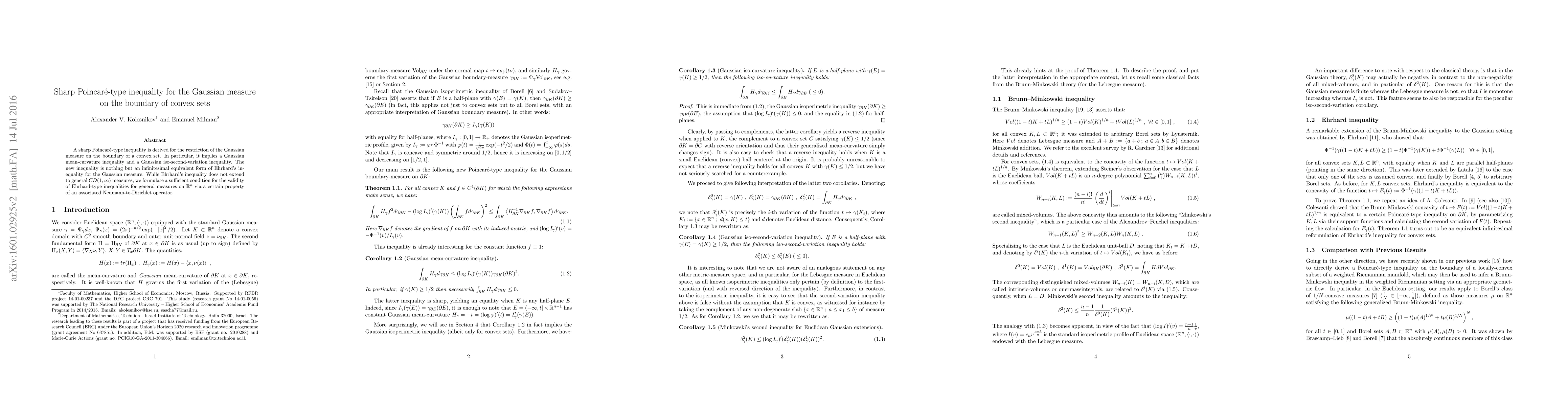 A sharp Poincar\'e-type inequality is derived for the restriction of the Gaussian measure on the boundary of a convex set. In particular, it implies a Gaussian mean-curvature inequality and a Gaussian iso second-variation inequality. The new inequality is nothing but an infinitesimal form of Ehrhard's inequality for the Gaussian measure.