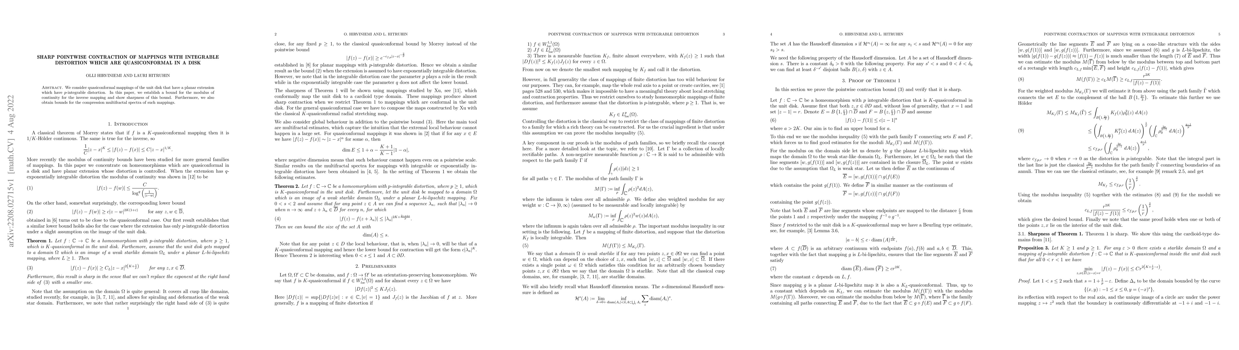 The novelty of this work lies in the sharp pointwise contraction bound for mappings with integrable distortion that are quasiconformal in a disk, along with the sharpness proof and the derived bounds for compression multifractal spectra, which extend the existing theory on quasiconformal mappings.