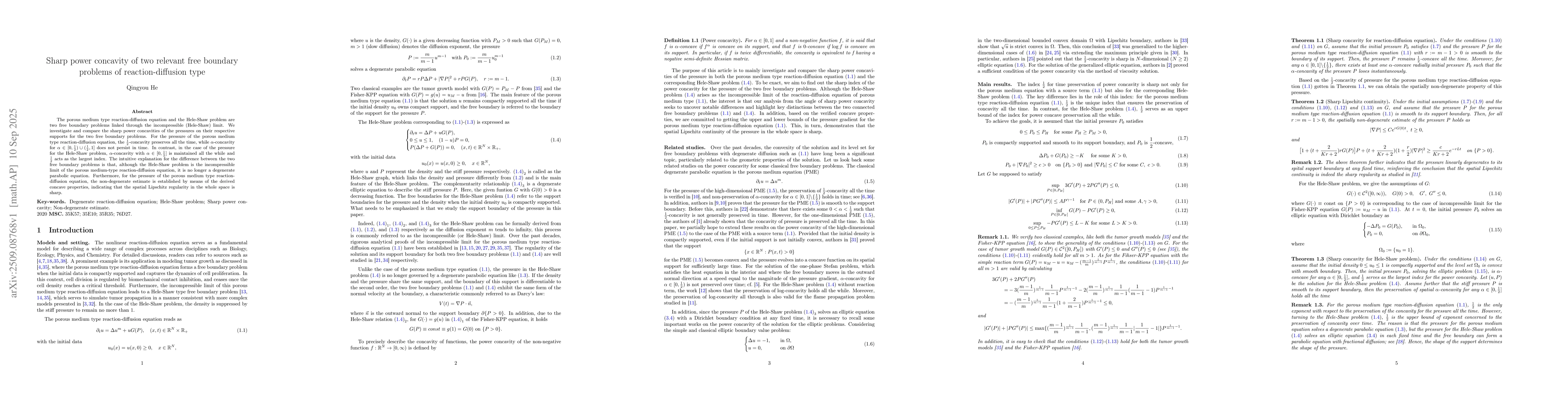 The porous medium type reaction-diffusion equation and the Hele-Shaw problem are two free boundary problems linked through the incompressible (Hele-Shaw) limit. We investigate and compare the sharp power concavities of the pressures on their respective supports for the two free boundary problems. For the pressure of the porous medium type reaction-diffusion equation, the $\frac{1}{2}$-concavity preserves all the time, while $\alpha$-concavity for $\alpha\in[0,\frac{1}{2})\cup(\frac{1}{2},1]$ does not persist in time. In contrast, in the case of the pressure for the Hele-Shaw problem, $\alpha$-concavity with $\alpha\in[0,\frac{1}{2}]$ is maintained all the while and $\frac{1}{2}$ acts as the largest index. The intuitive explanation for the difference between the two free boundary problems is that, although the Hele-Shaw problem is the incompressible limit of the porous medium-type reaction-diffusion equation, it is no longer a degenerate parabolic equation. Furthermore, for the pressure of the porous medium type reaction-diffusion equation, the non-degenerate estimate is established by means of the derived concave properties, indicating that the spatial Lipschitz regularity in the whole space is sharp.