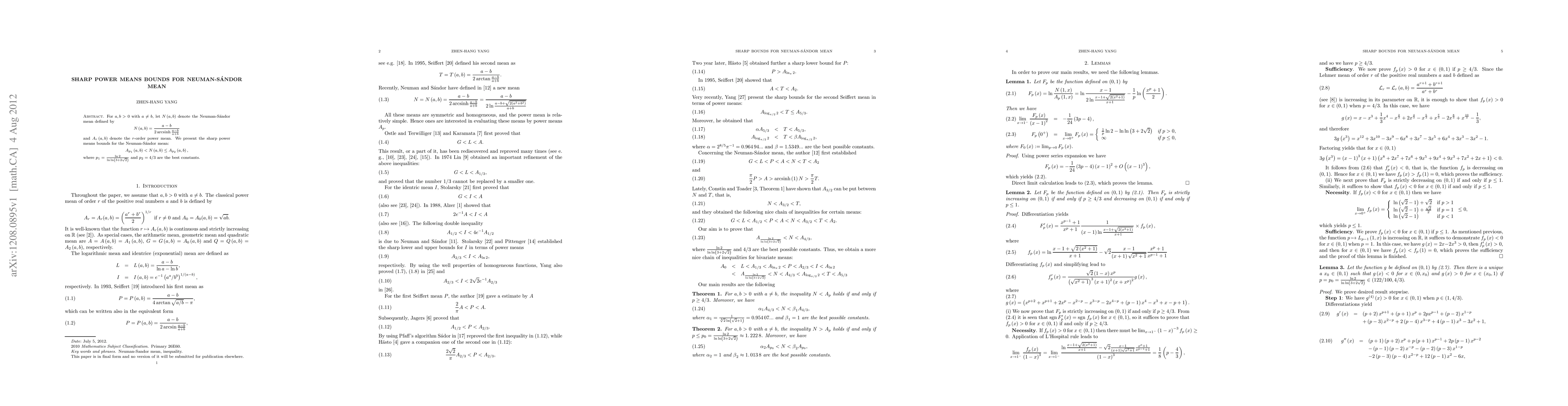 For a,b>0 with a\not=b, let N(a,b) denote the Neuman-S\'andor mean defined by