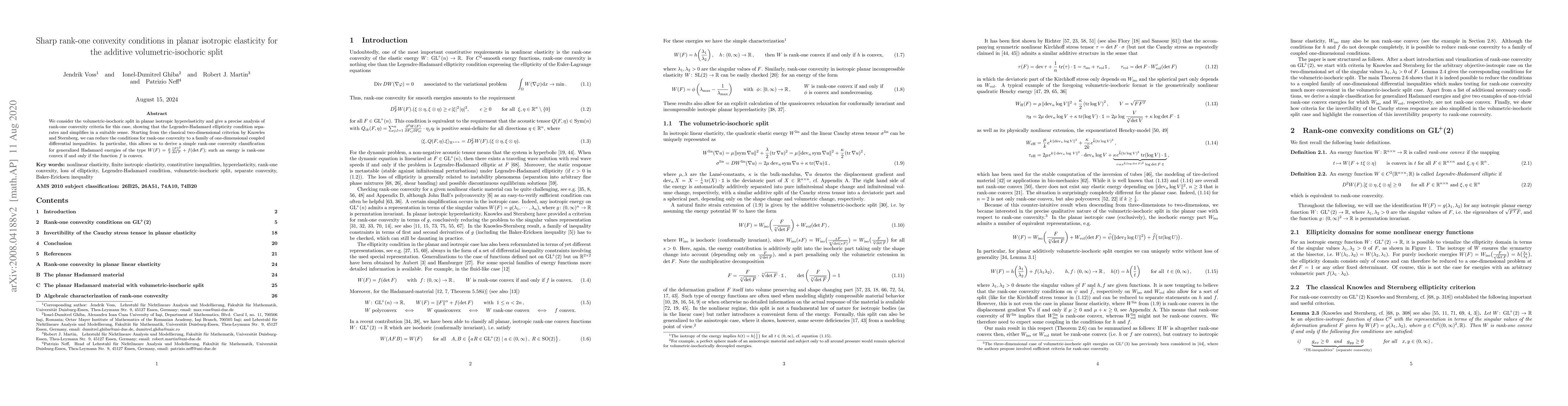This paper analyzes rank-one convexity criteria in planar isotropic elasticity, focusing on the volumetric-isochoric split, and simplifies the Legendre-Hadamard ellipticity condition. It derives a classification for generalized Hadamard energies, showing that such energies are rank-one convex if and only if the associated function is convex.