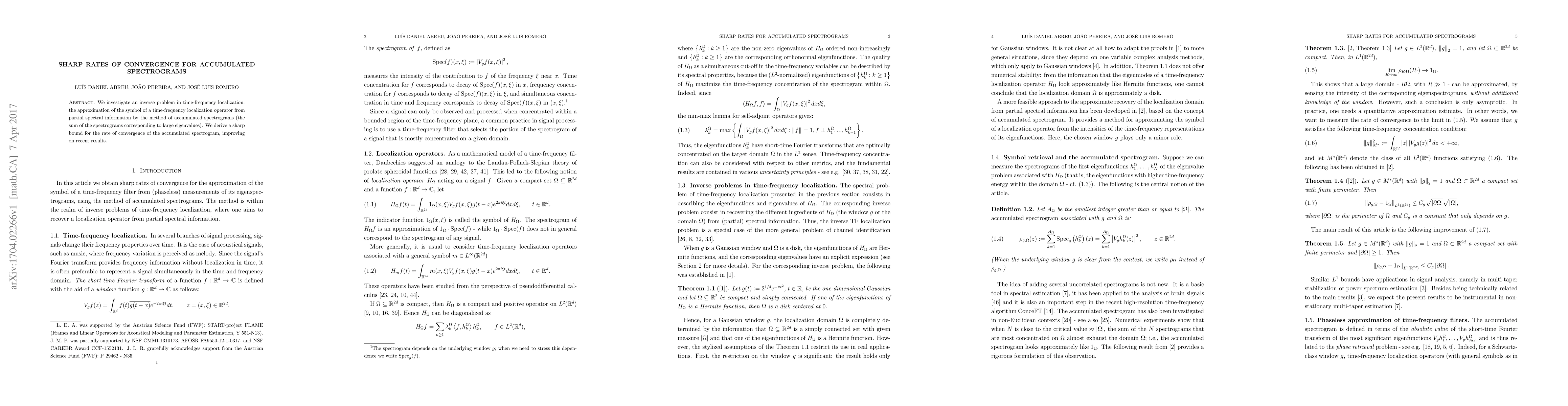 We investigate an inverse problem in time-frequency localization: the approximation of the symbol of a time-frequency localization operator from partial spectral information by the method of accumulated spectrograms (the sum of the spectrograms corresponding to large eigenvalues). We derive a sharp bound for the rate of convergence of the accumulated spectrogram, improving on recent results.