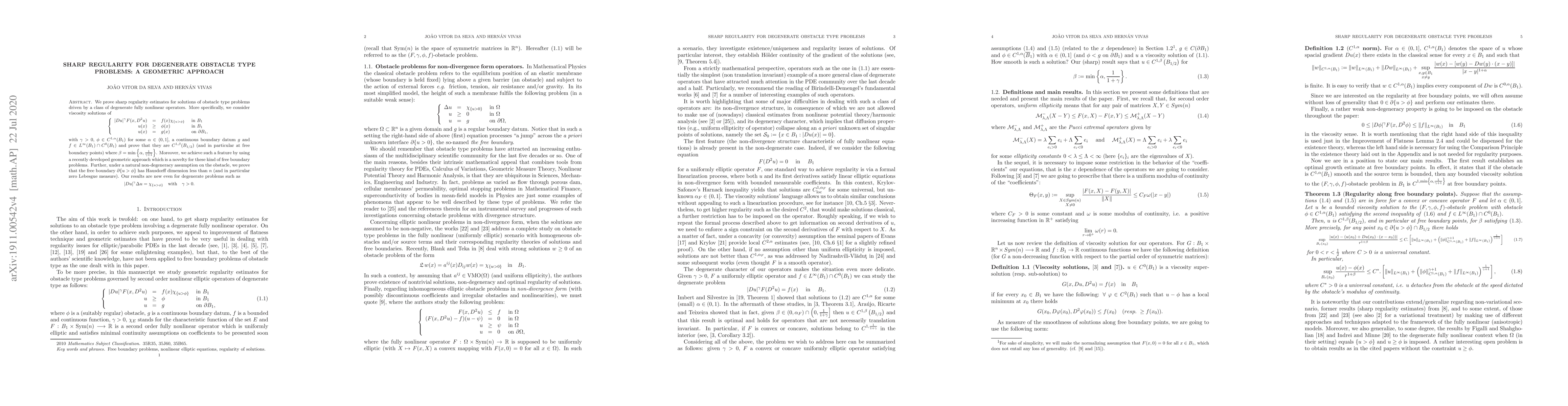 We prove sharp regularity estimates for solutions of obstacle type problems driven by a class of degenerate fully nonlinear operators; more specifically, we consider viscosity solutions of \[ |D u|^\gamma F(x, D^2u) = f(x)\chi_{\{u>\phi\}} \textrm{ in } B_1 \] with $\gamma>0$, $\phi \in C^{1, \alpha}(B_1)$ for some $\alpha\in(0,1]$ and $f\in L^\infty(B_1)$ constrained to satisfy \[ u\geq \phi\textrm{ in } B_1 \] and prove that they are $C^{1,\beta}(B_{1/2})$ (and in particular along free boundary points) where $\beta=\min\left\{\alpha, \frac{1}{\gamma+1}\right\}$. Moreover, we achieve such a feature by using a recently developed geometric approach which is a novelty for these kind of free boundary problems. Further, under a natural non-degeneracy assumption on the obstacle, we prove that the free boundary $\partial\{u>\phi\}$ has zero Lebesgue measure. Our results are new even for seemingly simple model as follows \[ |Du|^\gamma \Delta u=\chi_{\{u>\phi\}} \quad \text{with}\quad \gamma>0. \]