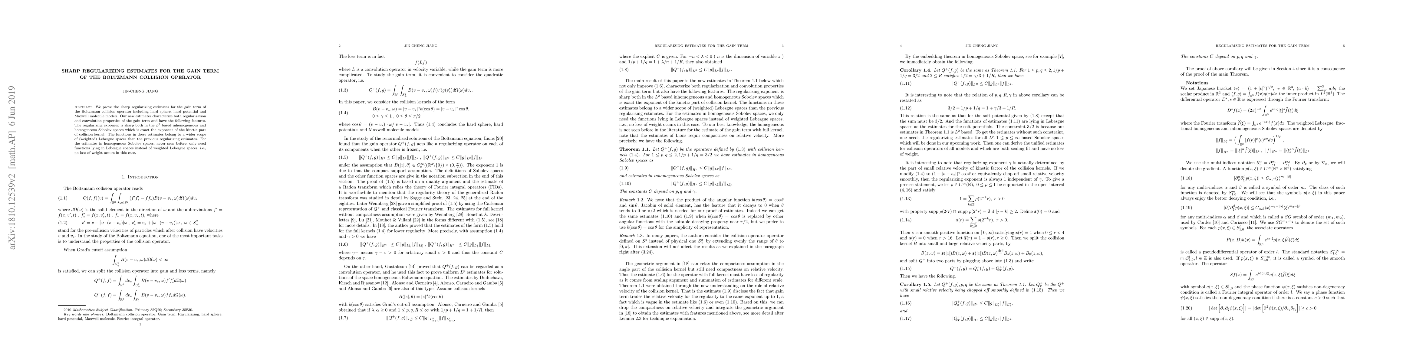 This paper proves sharp regularizing estimates for the gain term of the Boltzmann collision operator, applicable to hard sphere, hard potential, and Maxwell molecule models. The estimates precisely characterize regularization and convolution properties, with the regularizing exponent being exact in both $L^2$ based inhomogeneous and homogeneous Sobolev spaces, and functions in these estimates extend to broader (weighted) Lebesgue spaces without weight loss in homogeneous cases.