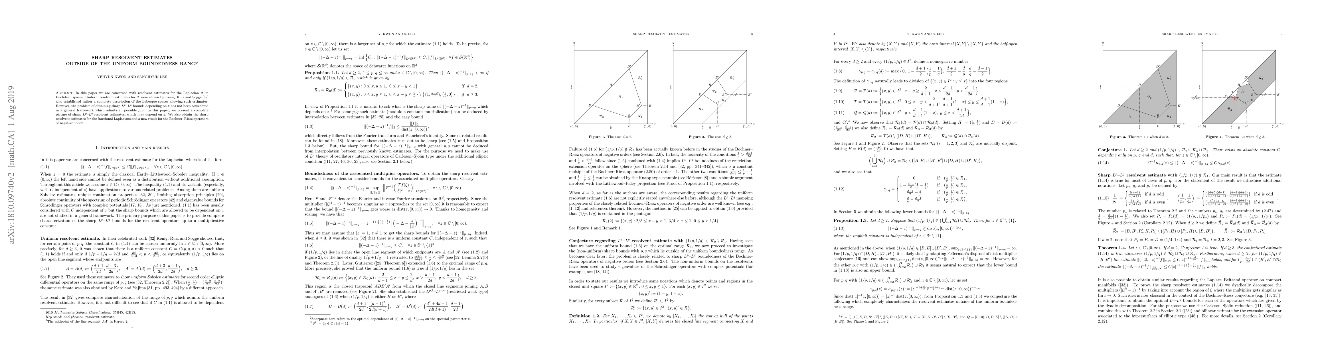 This paper provides sharp $L^p$--$L^q$ resolvent estimates for the Laplacian in Euclidean spaces, extending beyond the uniform boundedness range. It also covers sharp estimates for fractional Laplacians and new results for Bochner--Riesz operators of negative index.
