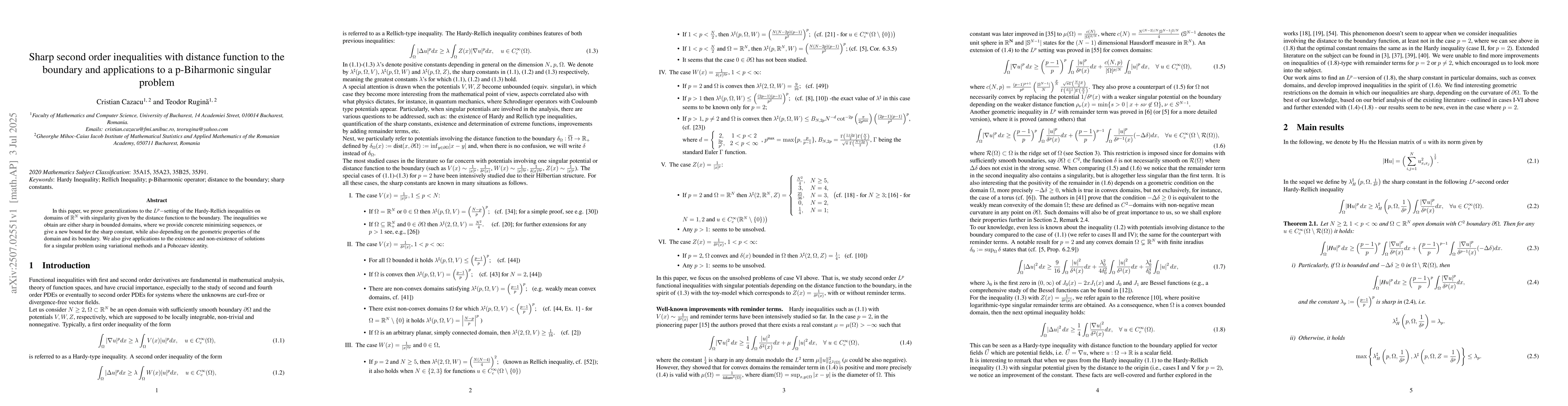 In this paper, we prove generalizations to the L^p setting of the Hardy-Rellich inequalities on domains of R^N with singularity given by the distance function to the boundary. The inequalities we obtain are either sharp in bounded domains, where we provide concrete minimizing sequences, or give a new bound for the sharp constant, while also depending on the geometric properties of the domain and its boundary. We also give applications to the existence and non-existence of solutions for a singular problem using variational methods and a Pohozaev identity.