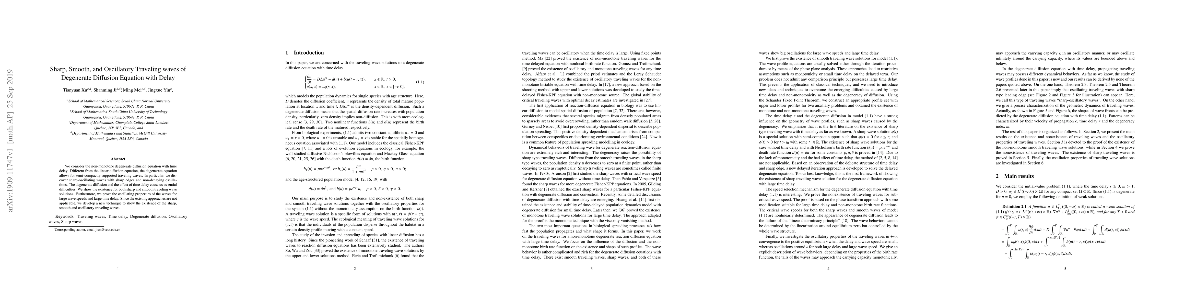 The development of a novel analytical technique to prove the existence of sharp, smooth, and oscillatory traveling wave solutions for degenerate diffusion equations with time delay.