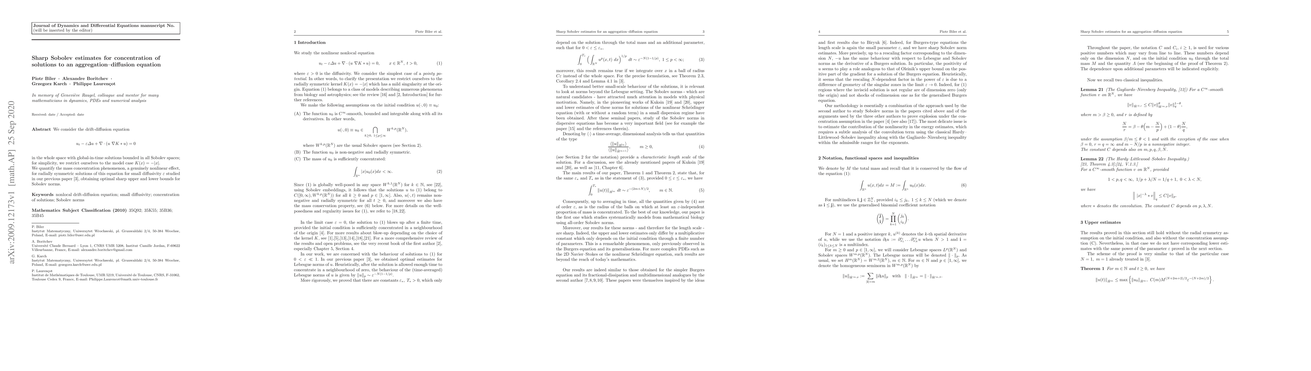 Researchers developed sharp Sobolev estimates to study concentration of solutions to an aggregation-diffusion equation, obtaining optimal bounds for small diffusivity values.
