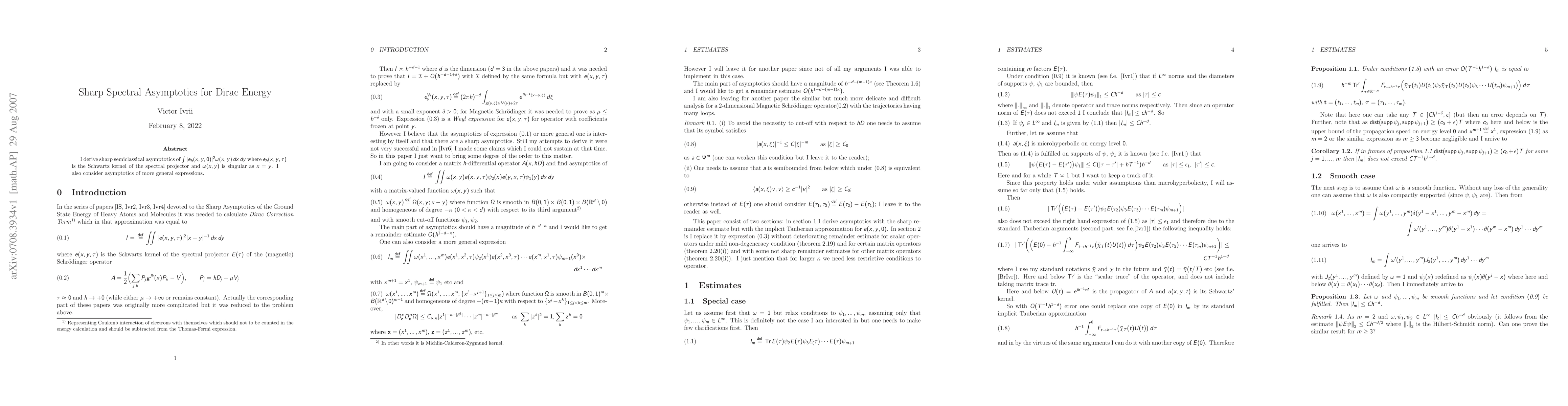 Researchers derive sharp semiclassical asymptotics for a specific integral related to Dirac energy, focusing on its singular behavior at $x=y$.