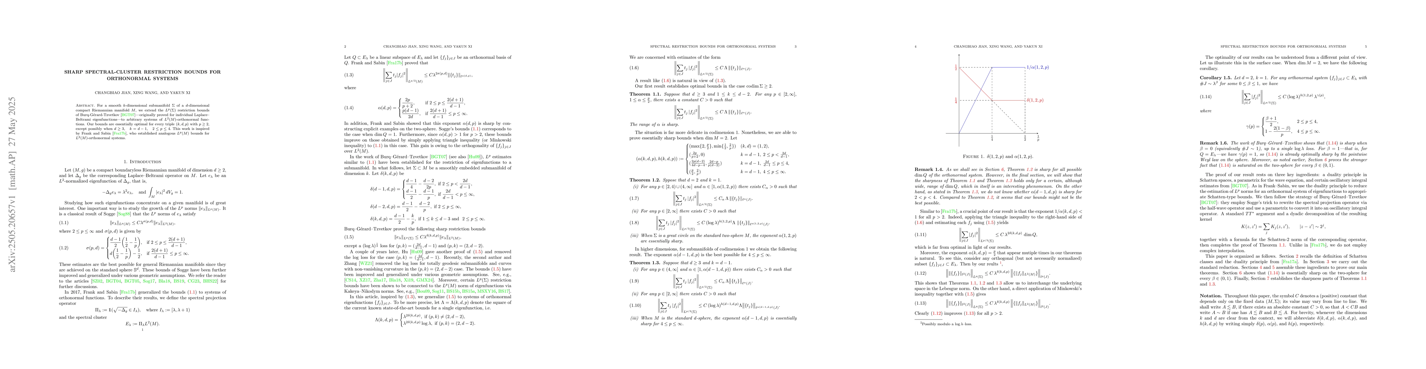 Development of sharp spectral-cluster restriction bounds for orthonormal systems on submanifolds of compact Riemannian manifolds, extending previous results for individual Laplace-Beltrami eigenfunctions