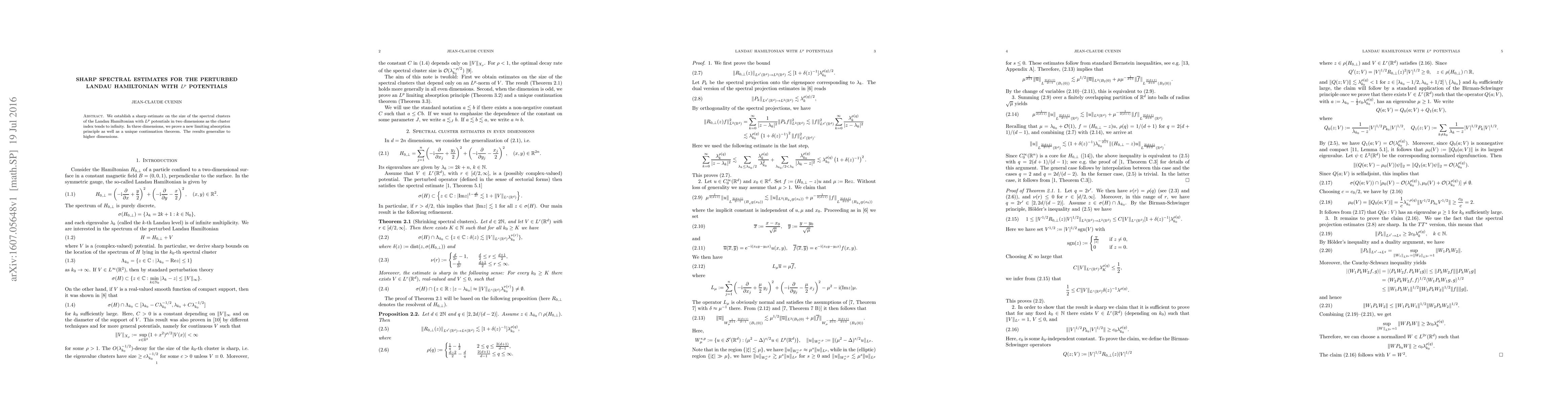 This paper provides sharp estimates for the spectral clusters of the Landau Hamiltonian perturbed by $L^p$ potentials, demonstrating their size in two dimensions as the cluster index increases. In three dimensions, it introduces a new limiting absorption principle and a unique continuation theorem, extending these findings to higher dimensions.
