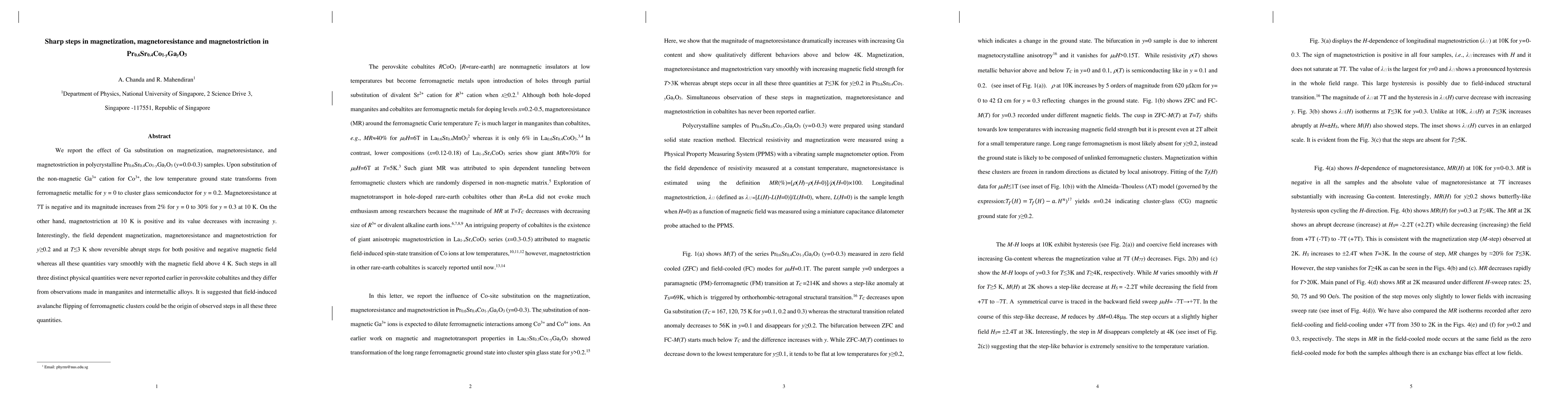 The study explores how substituting non-magnetic Ga into a cobalt-based material changes its magnetic and electrical behavior, revealing sudden steps in magnetization and resistance at low temperatures. These findings suggest that magnetic clusters can abruptly flip under magnetic fields, a phenomenon not previously observed in similar materials.