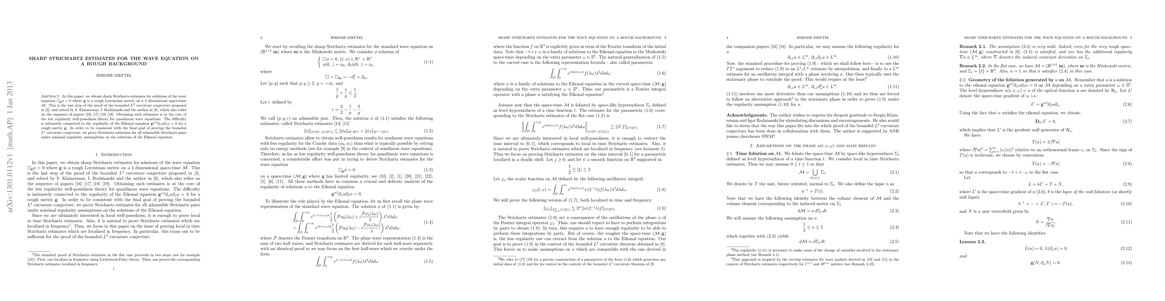 This paper establishes sharp Strichartz estimates for the wave equation on a rough Lorentzian metric, crucial for proving the bounded $L^2$ curvature conjecture, and addresses the low regularity well-posedness theory for quasilinear wave equations by considering minimal regularity assumptions on solutions of the Eikonal equation.