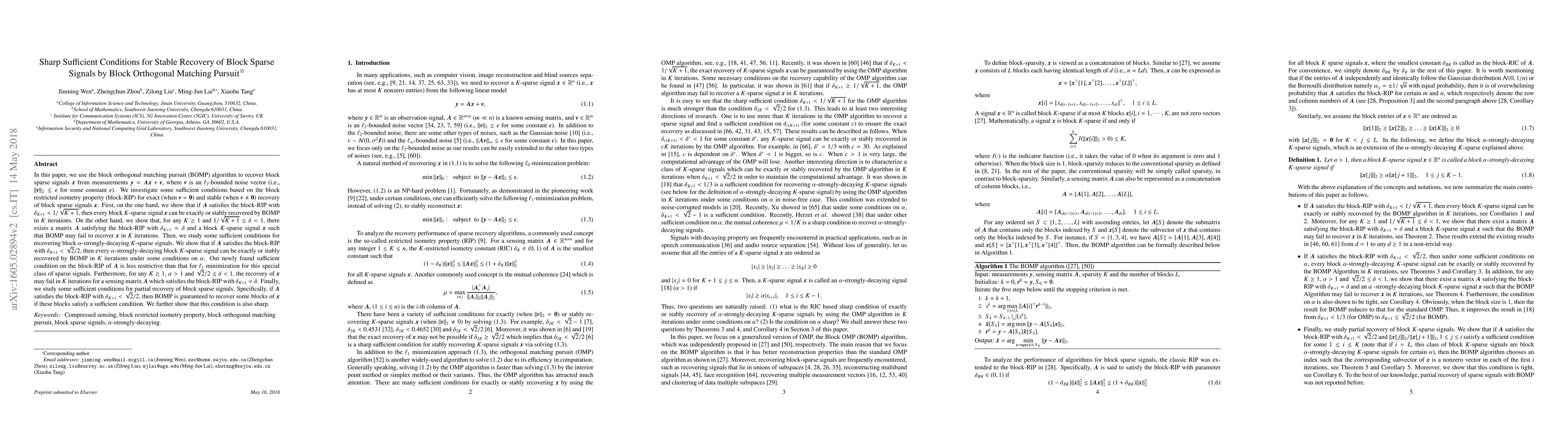 In this paper, we use the block orthogonal matching pursuit (BOMP) algorithm to recover block sparse signals $\x$ from measurements $\y=\A\x+\v$, where $\v$ is an $\ell_2$-bounded noise vector (i.e., $\|\v\|_2\leq \epsilon$ for some constant $\epsilon$). We investigate some sufficient conditions based on the block restricted isometry property (block-RIP) for exact (when $\v=\0$) and stable (when $\v\neq\0$) recovery of block sparse signals $\x$. First, on the one hand, we show that if $\A$ satisfies the block-RIP with $\delta_{K+1}<1/\sqrt{K+1}$, then every block $K$-sparse signal $\x$ can be exactly or stably recovered by BOMP in $K$ iterations. On the other hand, we show that, for any $K\geq 1$ and $1/\sqrt{K+1}\leq \delta<1$, there exists a matrix $\A$ satisfying the block-RIP with $\delta_{K+1}=\delta$ and a block $K$-sparse signal $\x$ such that BOMP may fail to recover $\x$ in $K$ iterations. Then, we study some sufficient conditions for recovering block $\alpha$-strongly-decaying $K$-sparse signals. We show that if $\A$ satisfies the block-RIP with $\delta_{K+1}<\sqrt{2}/2$, then every $\alpha$-strongly-decaying block $K$-sparse signal can be exactly or stably recovered by BOMP in $K$ iterations under some conditions on $\alpha$. Our newly found sufficient condition on the block-RIP of $\A$ is less restrictive than that for $\ell_1$ minimization for this special class of sparse signals. Furthermore, for any $K\geq 1$, $\alpha>1$ and $\sqrt{2}/2\leq \delta<1$, the recovery of $\x$ may fail in $K$ iterations for a sensing matrix $\A$ which satisfies the block-RIP with $\delta_{K+1}=\delta$. Finally, we study some sufficient conditions for partial recovery of block sparse signals. Specifically, if $\A$ satisfies the block-RIP with $\delta_{K+1}<\sqrt{2}/2$, then BOMP is guaranteed to recover some blocks of $\x$ if these blocks satisfy a sufficient condition.