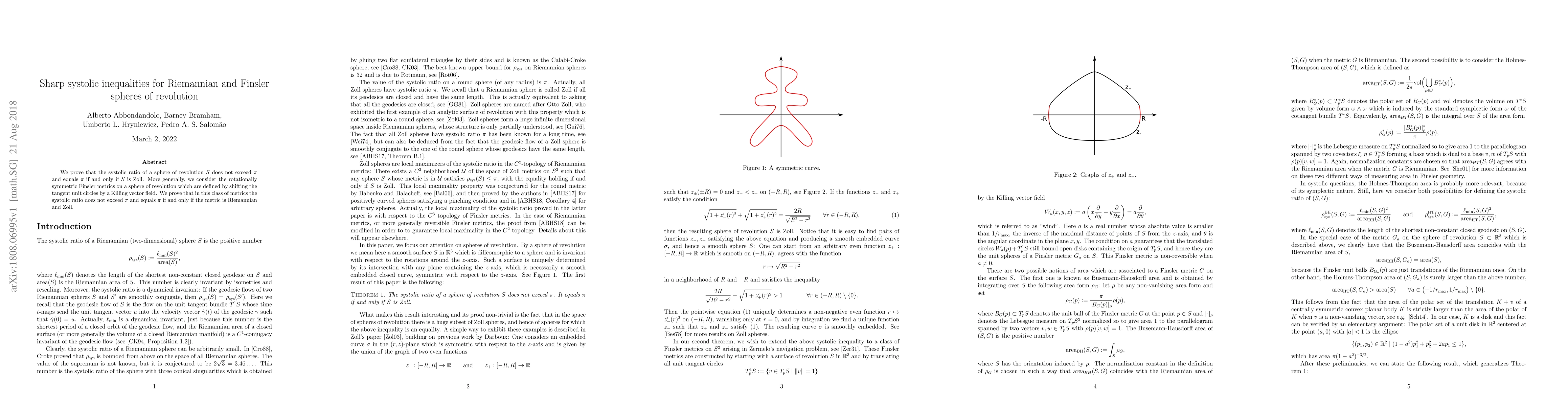 Researchers prove that a sphere of revolution has a systolic ratio not exceeding pi and equals pi if and only if it is a Zoll surface, extending the result to Finsler metrics on rotationally symmetric spheres.