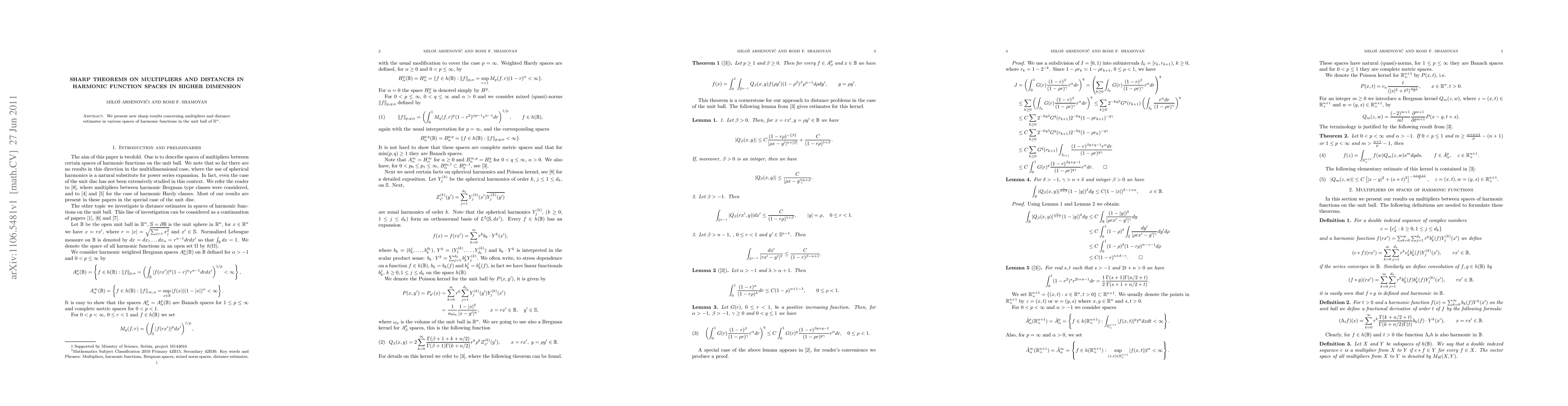 Summary: This paper introduces new sharp theorems regarding multipliers and distance estimates in harmonic function spaces within the unit ball of $R^n$, providing significant insights into the structure and properties of these functions.