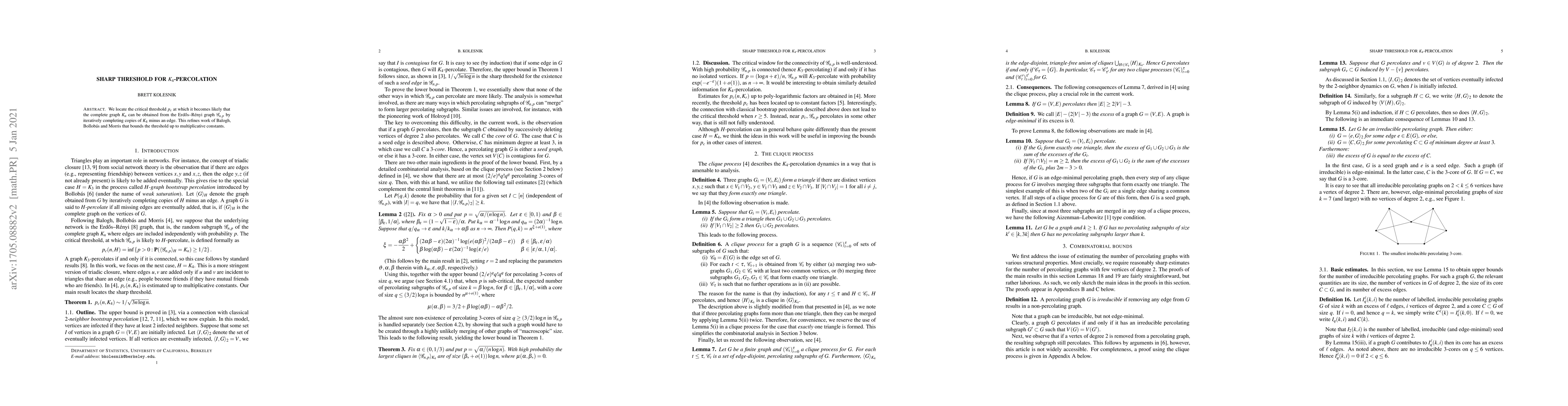The paper provides a detailed proof of the sharp threshold for $K_4$-percolation, utilizing advanced combinatorial and probabilistic techniques.