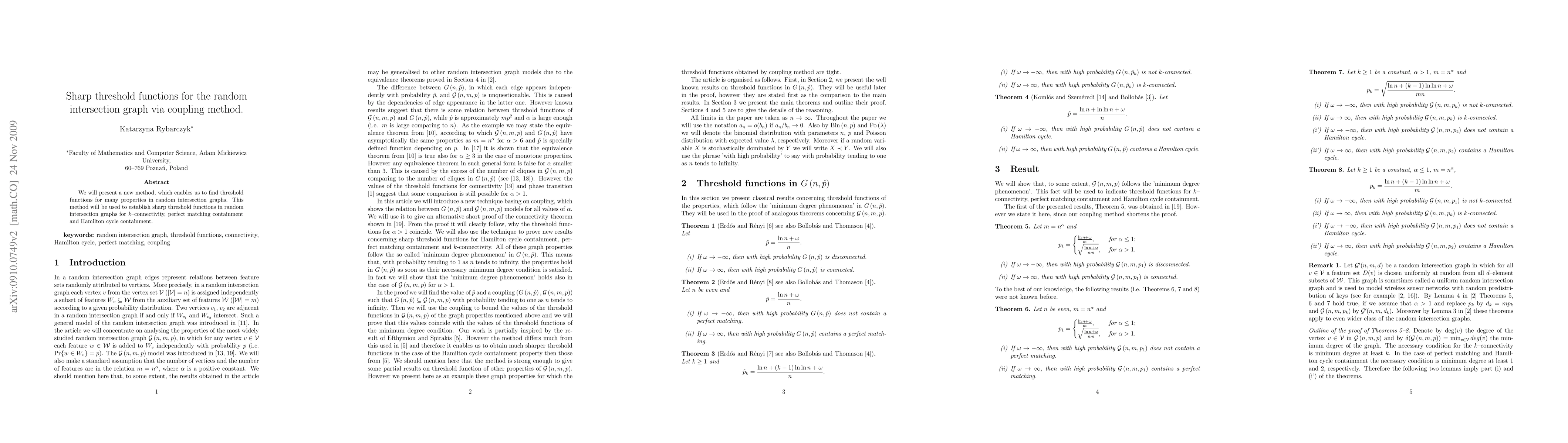 A novel coupling method to determine sharp threshold functions for various graph properties in random intersection graphs.