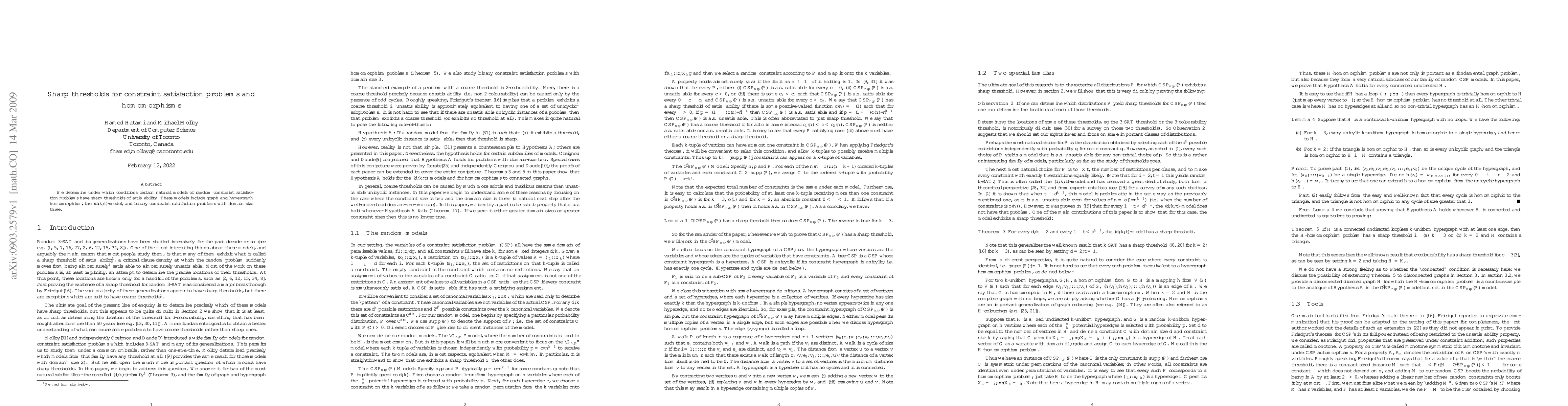 This paper investigates the conditions leading to sharp thresholds in satisfiability for various random constraint satisfaction problems, including graph and hypergraph homomorphisms, the $(d,k,t)$-model, and binary CSPs with a domain size of three. The results provide insights into when these problems transition from being almost always satisfiable to almost always unsatisfiable.