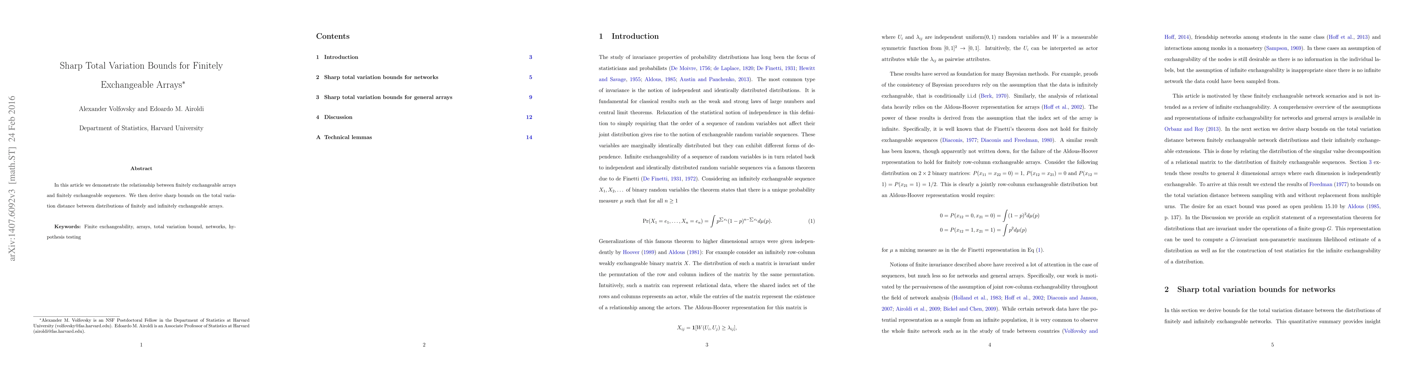 In this article we demonstrate the relationship between finitely exchangeable arrays and finitely exchangeable sequences. We then derive sharp bounds on the total variation distance between distributions of finitely and infinitely exchangeable arrays.