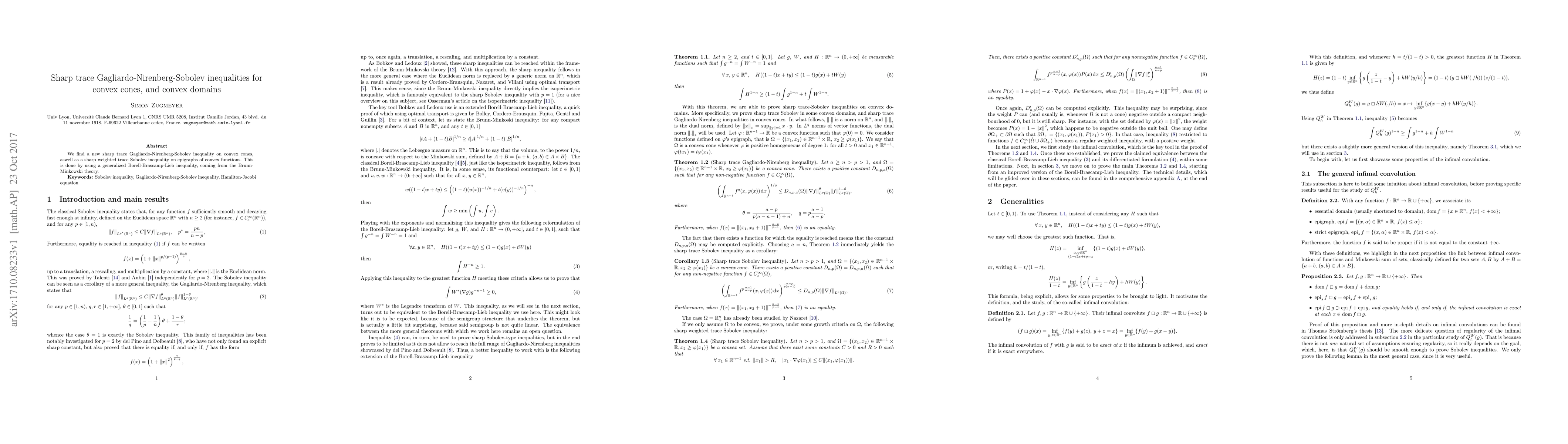 We find a new sharp trace Gagliardo-Nirenberg-Sobolev inequality on convex cones, aswell as a weighted sharp trace Sobolev inequality on epigraphs of convex functions. This is done by using a generalized Borell-Brascamp-Lieb inequality, coming from the Brunn-Minkowski theory.