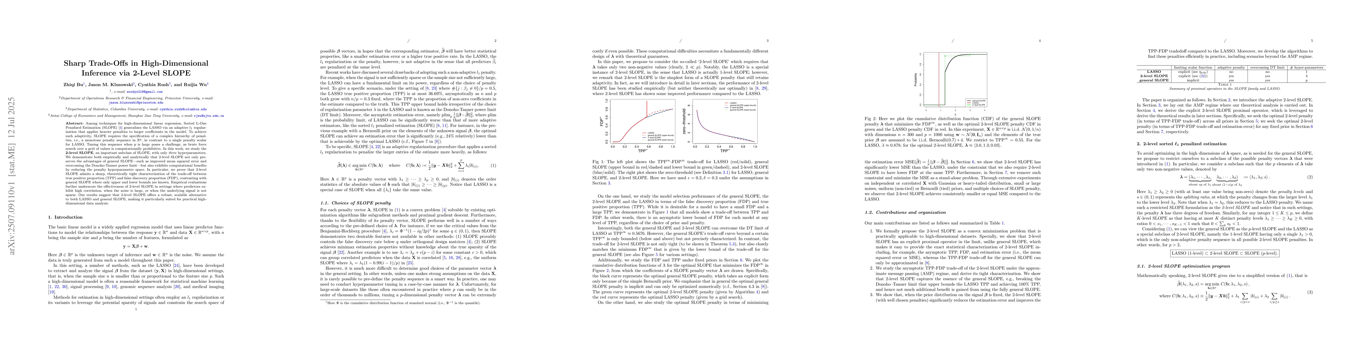 Among techniques for high-dimensional linear regression, Sorted L-One Penalized Estimation (SLOPE) generalizes the LASSO via an adaptive $l_1$ regularization that applies heavier penalties to larger coefficients in the model. To achieve such adaptivity, SLOPE requires the specification of a complex hierarchy of penalties, i.e., a monotone penalty sequence in $R^p$, in contrast to a single penalty scalar for LASSO. Tuning this sequence when $p$ is large poses a challenge, as brute force search over a grid of values is computationally prohibitive. In this work, we study the 2-level SLOPE, an important subclass of SLOPE, with only three hyperparameters. We demonstrate both empirically and analytically that 2-level SLOPE not only preserves the advantages of general SLOPE -- such as improved mean squared error and overcoming the Donoho-Tanner power limit -- but also exhibits computational benefits by reducing the penalty hyperparameter space. In particular, we prove that 2-level SLOPE admits a sharp, theoretically tight characterization of the trade-off between true positive proportion (TPP) and false discovery proportion (FDP), contrasting with general SLOPE where only upper and lower bounds are known. Empirical evaluations further underscore the effectiveness of 2-level SLOPE in settings where predictors exhibit high correlation, when the noise is large, or when the underlying signal is not sparse. Our results suggest that 2-level SLOPE offers a robust, scalable alternative to both LASSO and general SLOPE, making it particularly suited for practical high-dimensional data analysis.