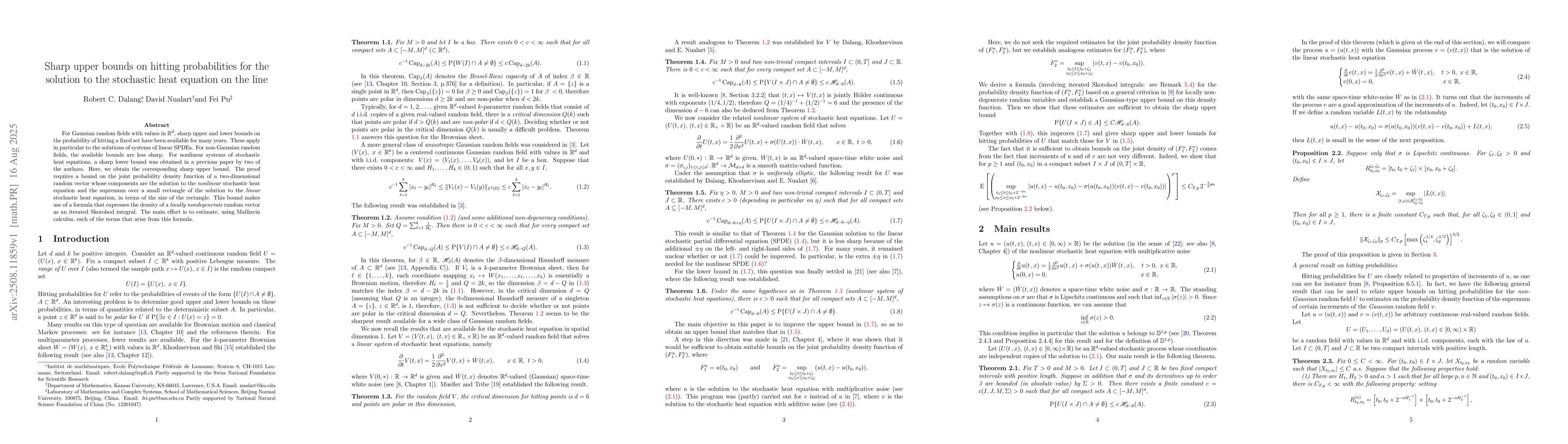 For Gaussian random fields with values in $\mathbb{R}^d$, sharp upper and lower bounds on the probability of hitting a fixed set have been available for many years. These apply in particular to the solutions of systems of linear SPDEs. For non-Gaussian random fields, the available bounds are less sharp. For nonlinear systems of stochastic heat equations, a sharp lower bound was obtained in a previous paper by two of the authors. Here, we obtain the corresponding sharp upper bound. The proof requires a bound on the joint probability density function of a two-dimensional random vector whose components are the solution to the {\em nonlinear} stochastic heat equation and the supremum over a small rectangle of the solution to the {\em linear} stochastic heat equation, in terms of the size of the rectangle. This bound makes use of a formula that expresses the density of a {\em locally nondegenerate} random vector as an iterated Skorohod integral. The main effort is to estimate, using Malliavin calculus, each of the terms that arise from this formula.