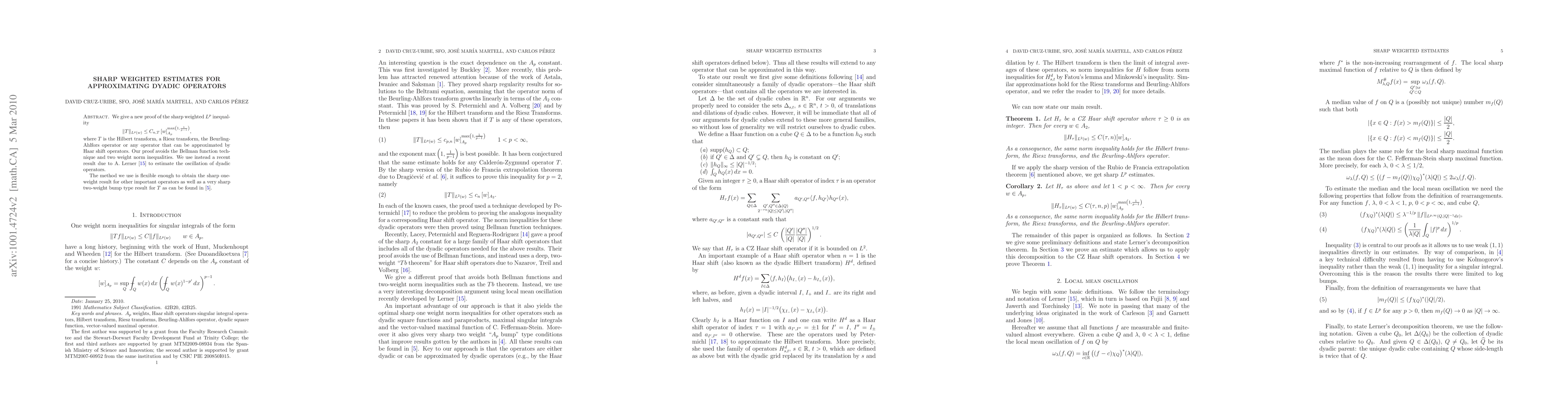 We give a new proof of the sharp weighted $L^2$ inequality ||T||_{L^2(w)} \leq c [w]_{A_2} where $T$ is the Hilbert transform, a Riesz transform, the Beurling-Ahlfors operator or any operator that can be approximated by Haar shift operators. Our proof avoids the Bellman function technique and two weight norm inequalities. We use instead a recent result due to A. Lerner to estimate the oscillation of dyadic operators.