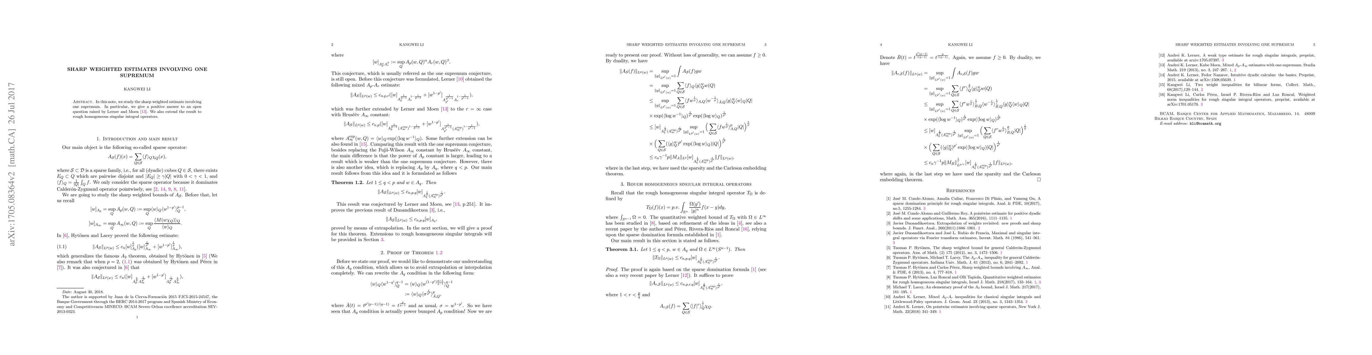 Researchers have solved an open question in weighted estimates involving one supremum, extending the result to rough homogeneous singular integral operators.