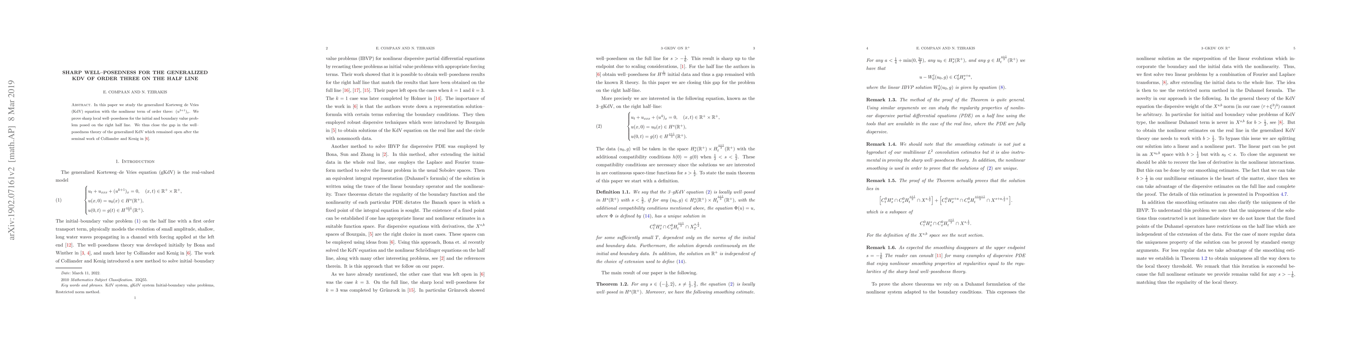 This paper establishes sharp local well-posedness for the generalized KdV equation of order three on the right half line, addressing a gap left by previous work by Colliander and Kenig. The study focuses on the initial and boundary value problem for the equation with a nonlinear term of order four.