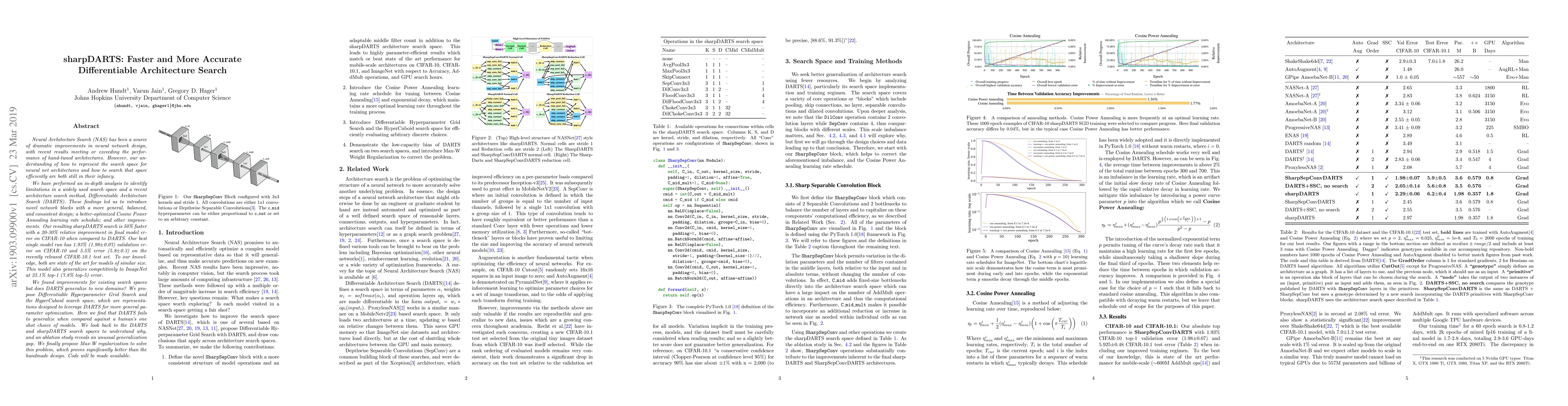 Neural Architecture Search (NAS) has been a source of dramatic improvements in neural network design, with recent results meeting or exceeding the performance of hand-tuned architectures. However, our understanding of how to represent the search space for neural net architectures and how to search that space efficiently are both still in their infancy. We have performed an in-depth analysis to identify limitations in a widely used search space and a recent architecture search method, Differentiable Architecture Search (DARTS). These findings led us to introduce novel network blocks with a more general, balanced, and consistent design; a better-optimized Cosine Power Annealing learning rate schedule; and other improvements. Our resulting sharpDARTS search is 50% faster with a 20-30% relative improvement in final model error on CIFAR-10 when compared to DARTS. Our best single model run has 1.93% (1.98+/-0.07) validation error on CIFAR-10 and 5.5% error (5.8+/-0.3) on the recently released CIFAR-10.1 test set. To our knowledge, both are state of the art for models of similar size. This model also generalizes competitively to ImageNet at 25.1% top-1 (7.8% top-5) error. We found improvements for existing search spaces but does DARTS generalize to new domains? We propose Differentiable Hyperparameter Grid Search and the HyperCuboid search space, which are representations designed to leverage DARTS for more general parameter optimization. Here we find that DARTS fails to generalize when compared against a human's one shot choice of models. We look back to the DARTS and sharpDARTS search spaces to understand why, and an ablation study reveals an unusual generalization gap. We finally propose Max-W regularization to solve this problem, which proves significantly better than the handmade design. Code will be made available.