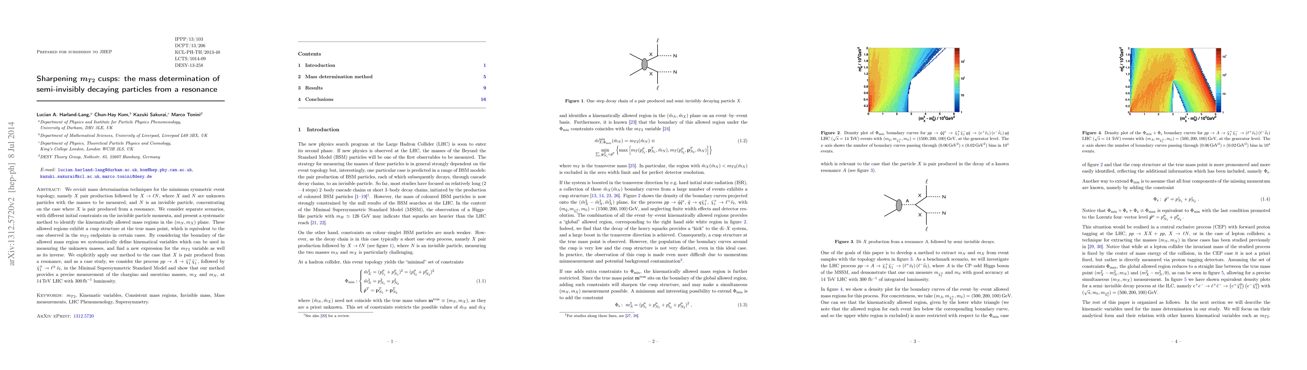 We revisit mass determination techniques for the minimum symmetric event topology, namely $X$ pair production followed by $X \to \ell N$, where $X$ and $N$ are unknown particles with the masses to be measured, and $N$ is an invisible particle, concentrating on the case where $X$ is pair produced from a resonance. We consider separate scenarios, with different initial constraints on the invisible particle momenta, and present a systematic method to identify the kinematically allowed mass regions in the $(m_N, m_X)$ plane. These allowed regions exhibit a cusp structure at the true mass point, which is equivalent to the one observed in the $m_{T2}$ endpoints in certain cases. By considering the boundary of the allowed mass region we systematically define kinematical variables which can be used in measuring the unknown masses, and find a new expression for the $m_{T2}$ variable as well as its inverse. We explicitly apply our method to the case that $X$ is pair produced from a resonance, and as a case study, we consider the process $pp \to A \to \tilde \chi_1^+ \tilde \chi_1^-$, followed by $\tilde \chi_1^\pm \to \ell^{\pm} \, \tilde \nu_{\ell}$, in the Minimal Supersymmetric Standard Model and show that our method provides a precise measurement of the chargino and sneutrino masses, $m_X$ and $m_N$, at $14 \, \mathrm{TeV}$ LHC with $300 \, \mathrm{fb}^{-1}$ luminosity.
