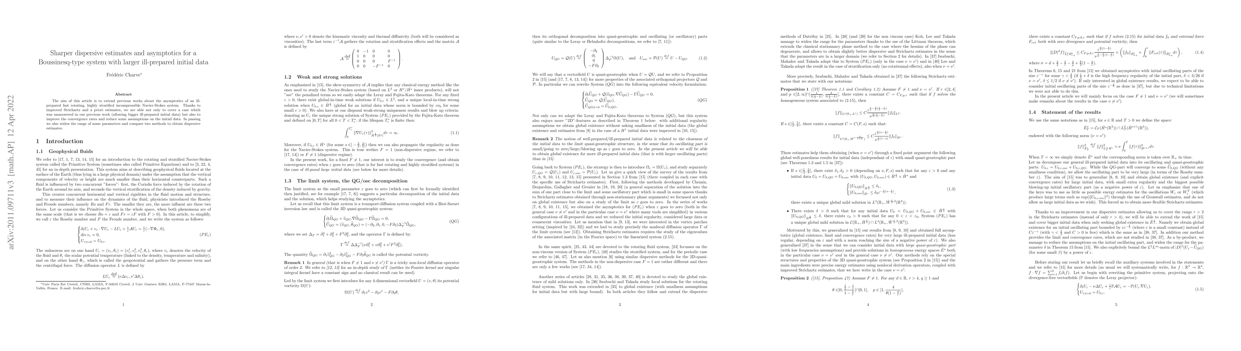 The aim of this article is to extend previous works about the asymptotics of an ill-prepared fast rotating, highly stratified incompressible Navier-Stokes system. Thanks to improved Strichartz estimates, we are able not only to cover a case which was unanswered in our previous work (allowing bigger ill-prepared initial data) but also to reduce some assumptions on the initial data. In passing we also widen the range of some parameters and compare two methods to obtain dispersive estimates.
