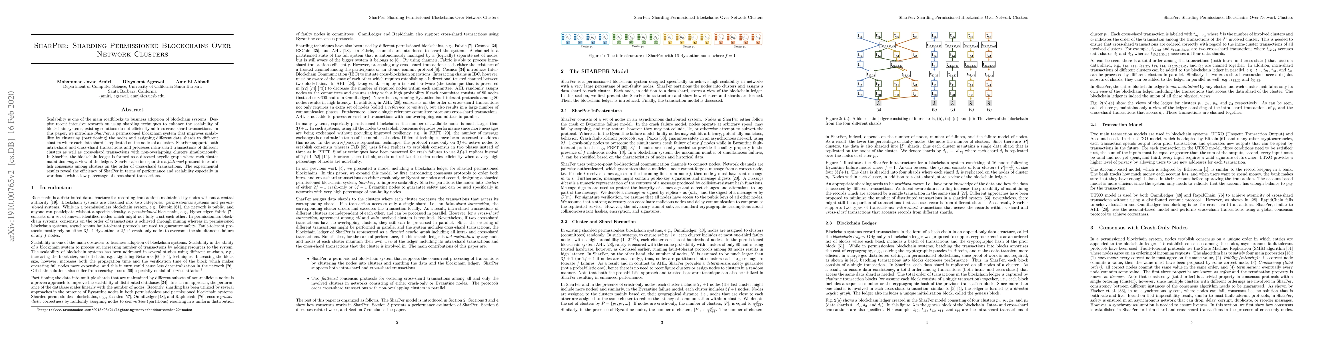 SharPer enhances the scalability of permissioned blockchains by partitioning nodes into clusters and assigning data shards to these clusters, enabling efficient processing of both intra-shard and cross-shard transactions. The system maintains a directed acyclic graph ledger and uses a flattened protocol for consensus, demonstrating improved performance and scalability.