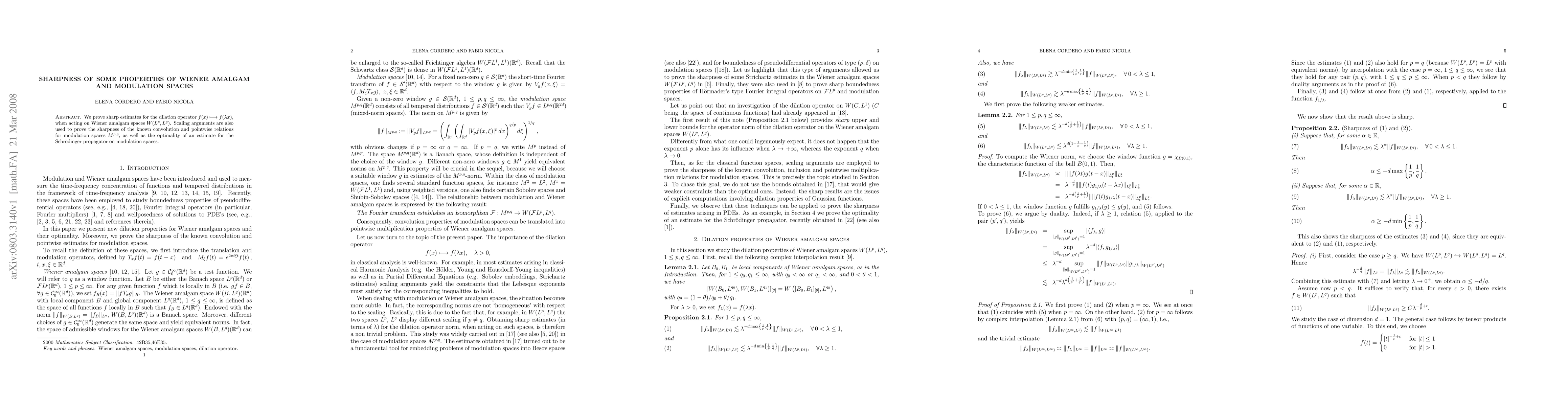 This paper proves sharp estimates for the dilation operator on Wiener amalgam spaces $W(L^p,L^q)$ and demonstrates the sharpness of convolution and pointwise relations for modulation spaces $M^{p,q}$, along with the optimality of an estimate for the Schrödinger propagator on modulation spaces.