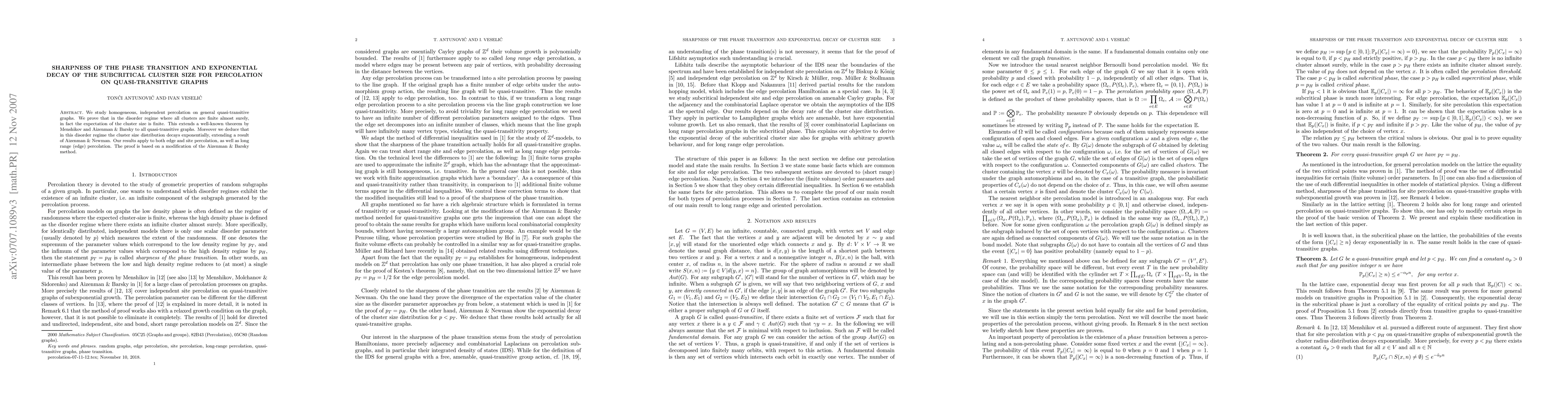 We study homogeneous, independent percolation on general quasi-transitive graphs. We prove that in the disorder regime where all clusters are finite almost surely, in fact the expectation of the cluster size is finite. This extends a well-known theorem by Menshikov and Aizenman & Barsky to all quasi-transitive graphs. Moreover we deduce that in this disorder regime the cluster size distribution decays exponentially, extending a result of Aizenman & Newman. Our results apply to both edge and site percolation, as well as long range (edge) percolation. The proof is based on a modification of the Aizenman & Barsky method.