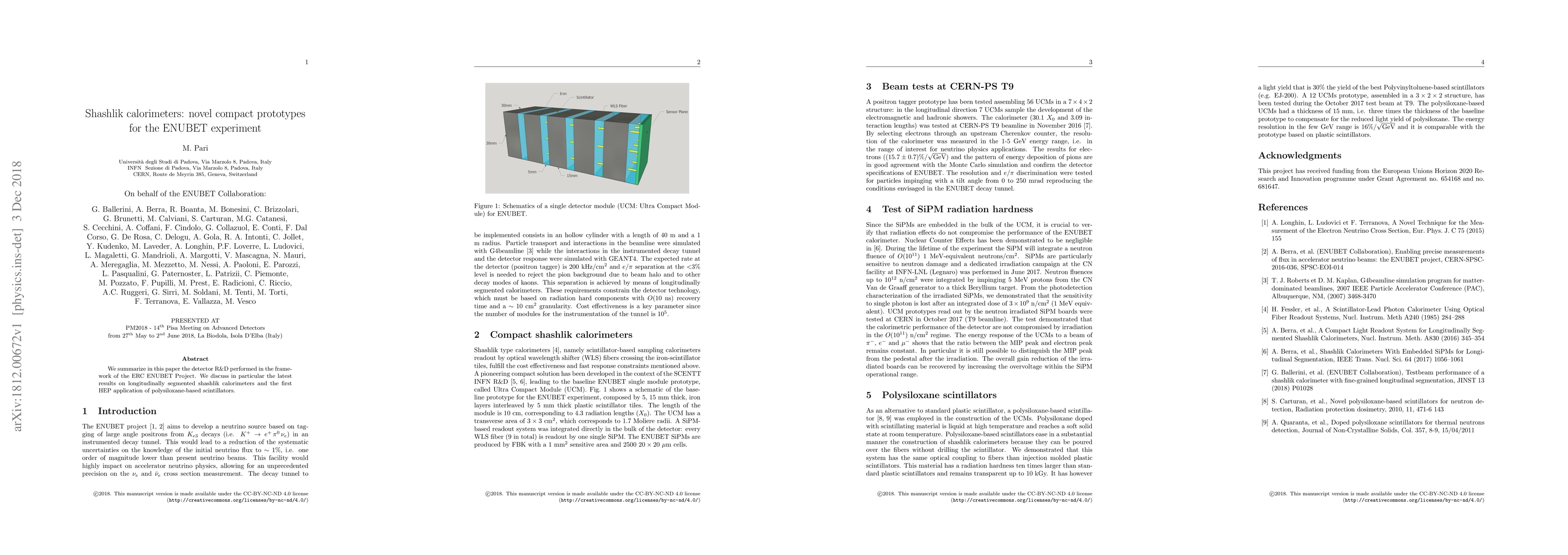 We summarize in this paper the detector R&D performed in the framework of the ERC ENUBET Project. We discuss in particular the latest results on longitudinally segmented shashlik calorimeters and the first HEP application of polysiloxane-based scintillators.