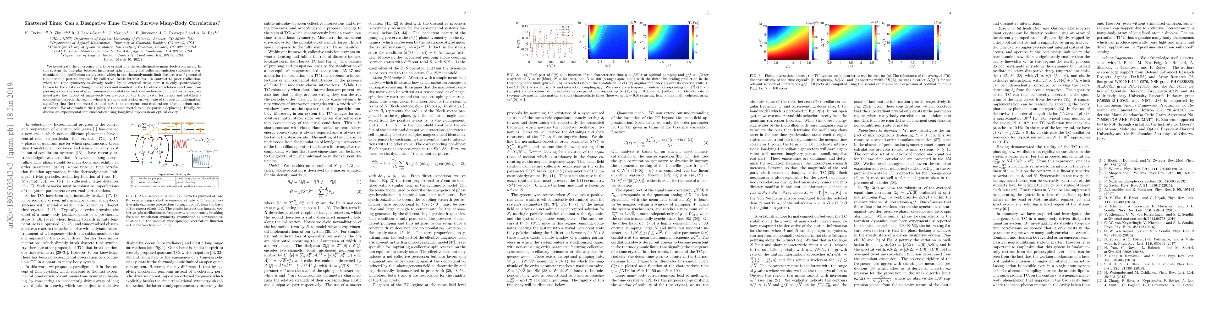 Researchers create a dissipative time crystal that survives many-body correlations, demonstrating an emergent semi-classical out-of-equilibrium state of matter. The findings show that the time crystal is stable when single-particle dephasing is slow.
