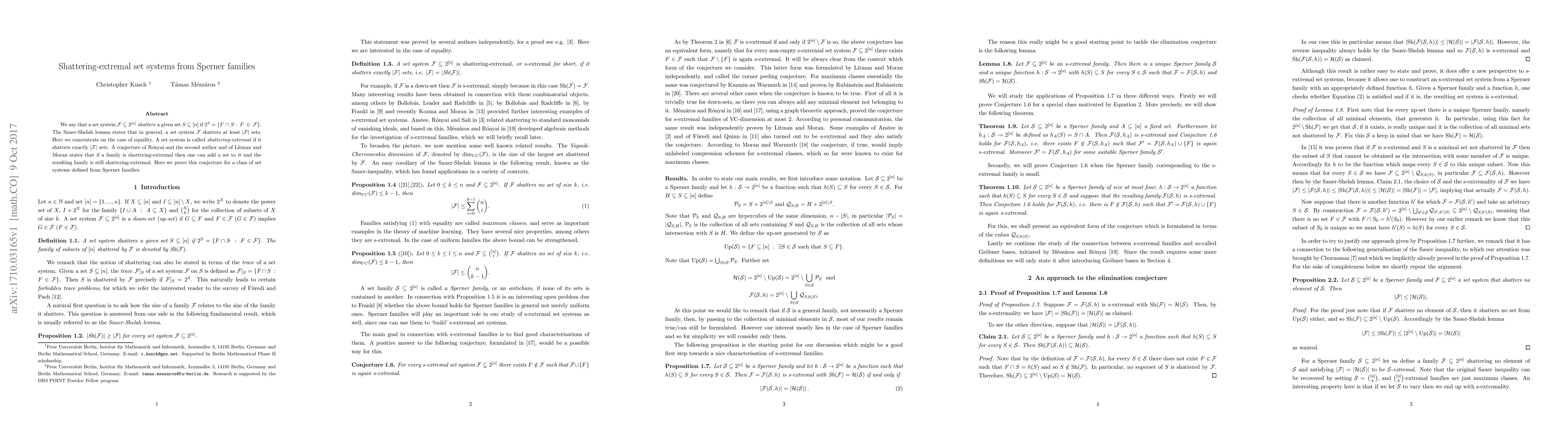 This paper proves a conjecture regarding shattering-extremal set systems, specifically showing that if a set system derived from a Sperner family is shattering-extremal, then adding any set to it maintains this property. The Sauer-Shelah lemma is used to establish the foundational understanding of set systems that shatter exactly as many sets as their size.