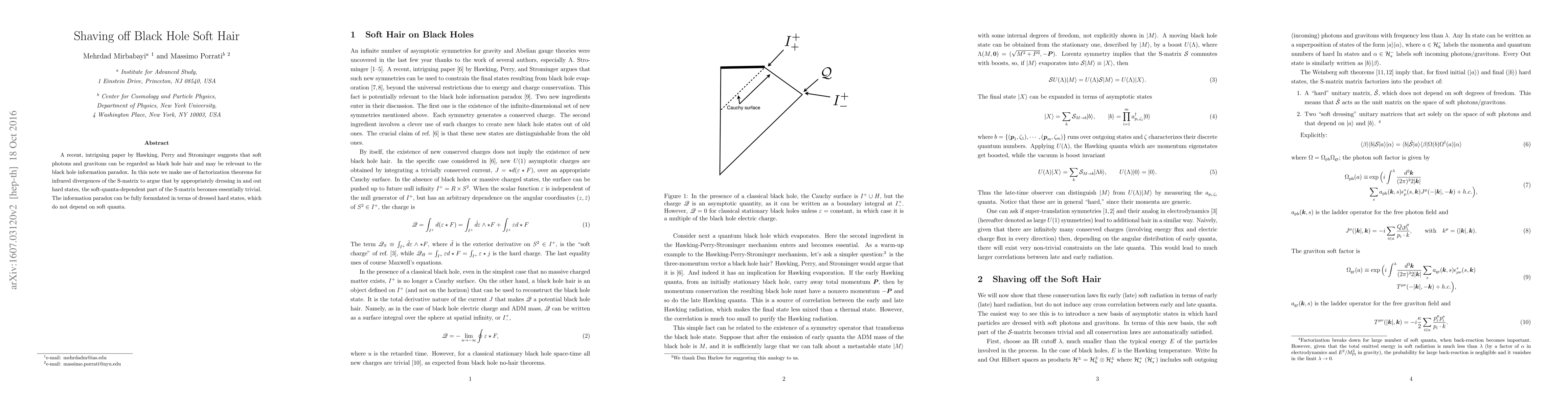 The paper argues that soft photons and gravitons can be seen as black hole "hair," addressing the black hole information paradox. By using factorization theorems for infrared divergences, the authors show that the S-matrix's soft-quanta-dependent part becomes trivial when considering dressed hard states, which do not rely on soft quanta.