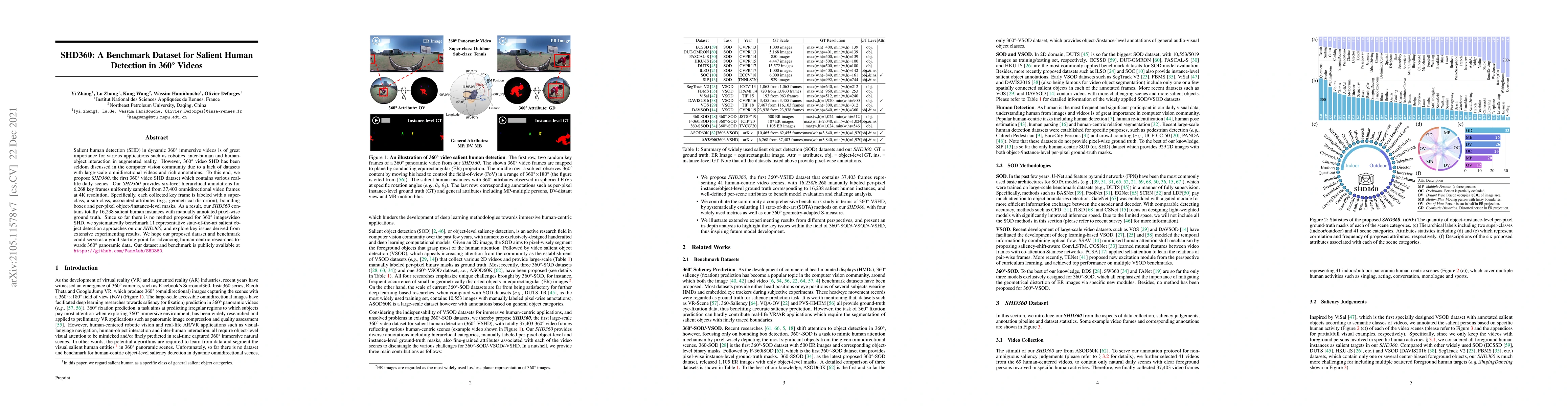 The paper introduces SHD360, a novel benchmark dataset for salient human detection in 360° videos, addressing the lack of such datasets in the computer vision field. The authors benchmark 11 salient object detection methods on this dataset to identify key challenges and propose it as a foundation for advancing 360° human-centric research.