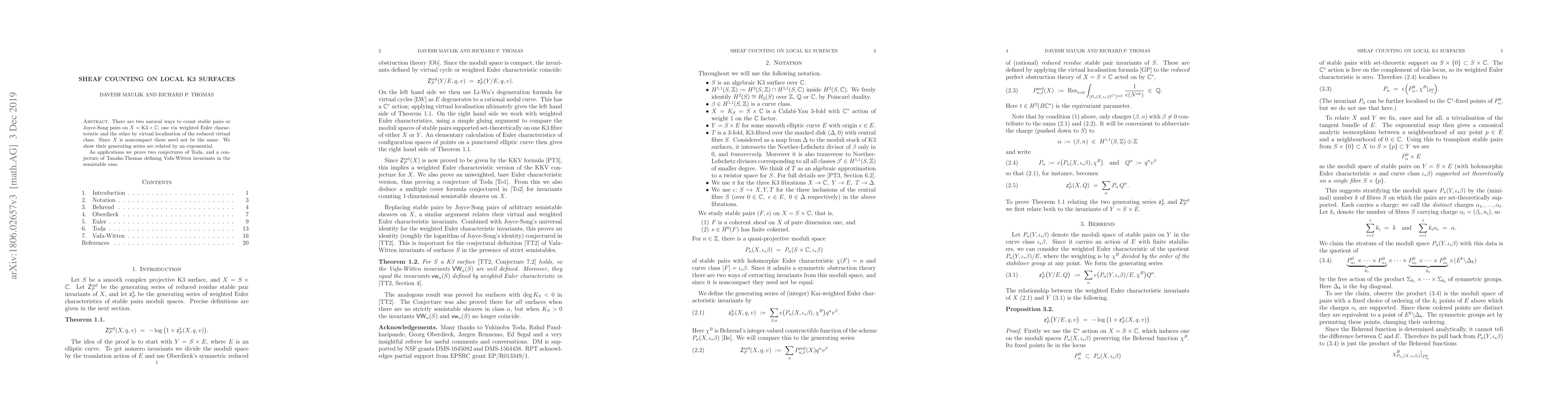 This paper demonstrates that generating series for counting stable pairs on local K3 surfaces differ via weighted Euler characteristic and virtual localization, yet are connected exponentially. It also validates two Toda conjectures and a conjecture by Tanaka-Thomas regarding Vafa-Witten invariants in semistable scenarios.