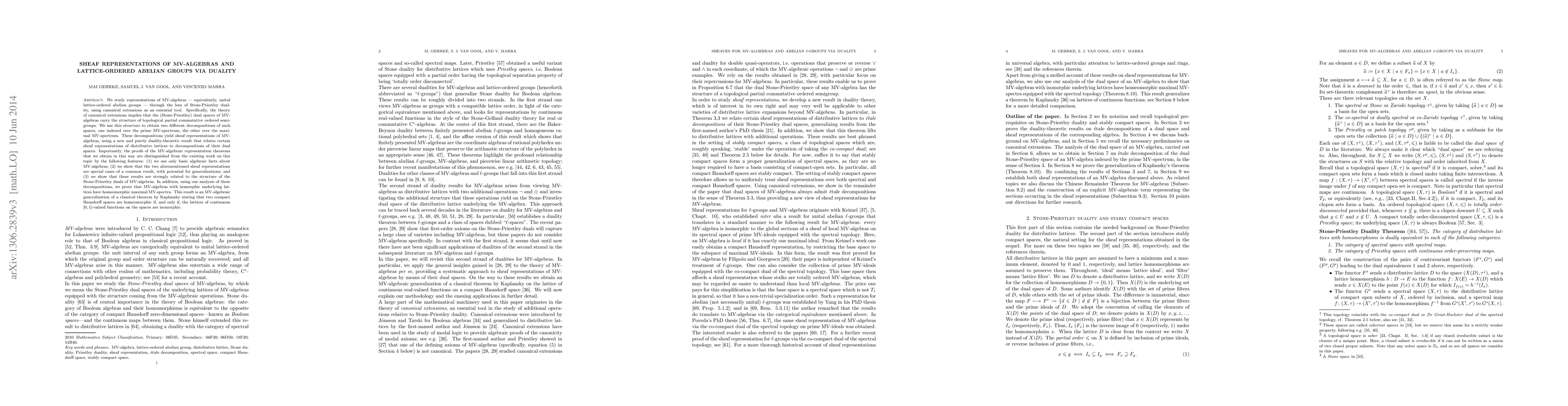 The paper introduces a duality-theoretic approach to relate sheaf representations and decompositions of dual spaces, providing novel sheaf representations for MV-algebras.