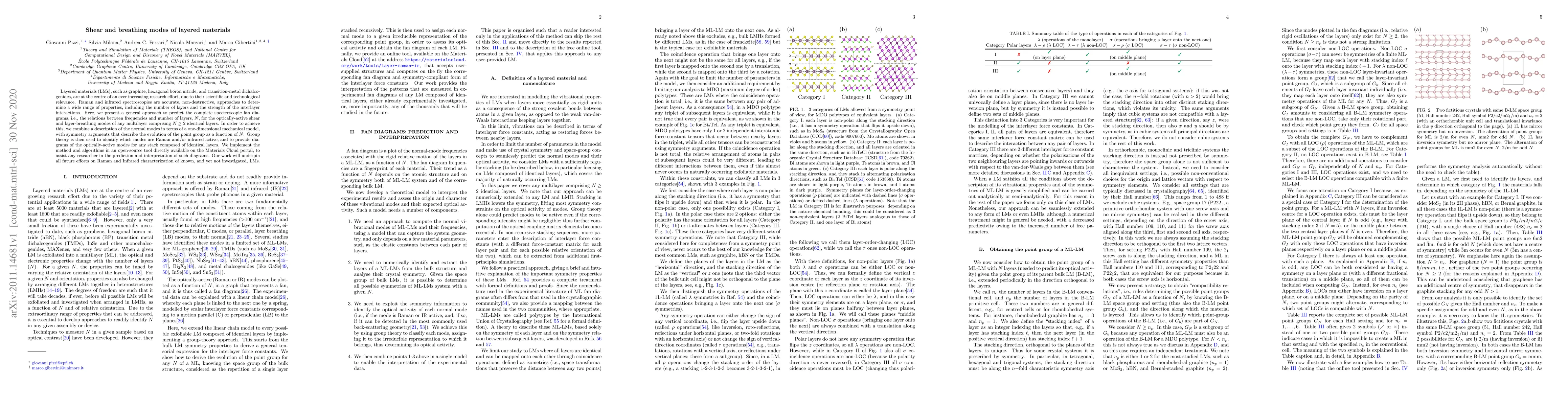Layered materials (LMs), such as graphite, hexagonal boron nitride, and transition-metal dichalcogenides, are at the centre of an ever increasing research effort, due to their scientific and technological relevance. Raman and infrared spectroscopies are accurate, non-destructive, approaches to determine a wide range of properties, including the number of layers and the strength of the interlayer interactions. Here, we present a general approach to predict the complete spectroscopic fan diagrams, i.e., the relations between frequencies and number of layers, $N$, for the optically-active shear and layer-breathing modes of any multilayer comprising $N \geq 2$ identical layers. In order to achieve this, we combine a description of the normal modes in terms of a one-dimensional mechanical model, with symmetry arguments that describe the evolution of the point group as a function of $N$. Group theory is then used to identify which modes are Raman and/or infrared active, and to provide diagrams of the optically-active modes for any stack composed of identical layers. We implement the method and algorithms in an open-source tool directly available on the Materials Cloud portal, to assist any researcher in the prediction and interpretation of such diagrams. Our work will underpin all future efforts on Raman and Infrared characterization of known, and yet not investigated, LMs.
