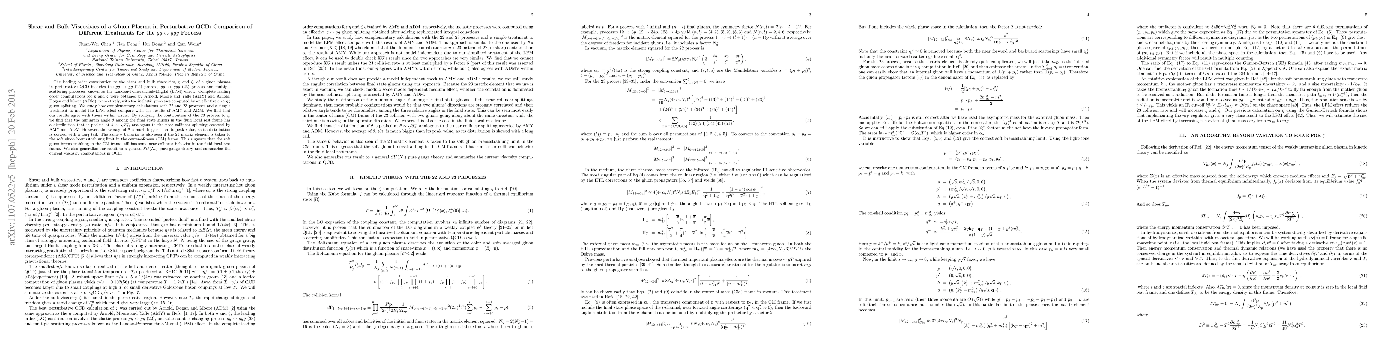 This paper compares different treatments for the perturbative QCD processes contributing to the shear and bulk viscosities of a gluon plasma, finding agreement with previous results within error margins. It highlights the near collinear behavior of the minimum angle among final state gluons, suggesting soft gluon bremsstrahlung retains some collinear characteristics in the fluid's local rest frame.