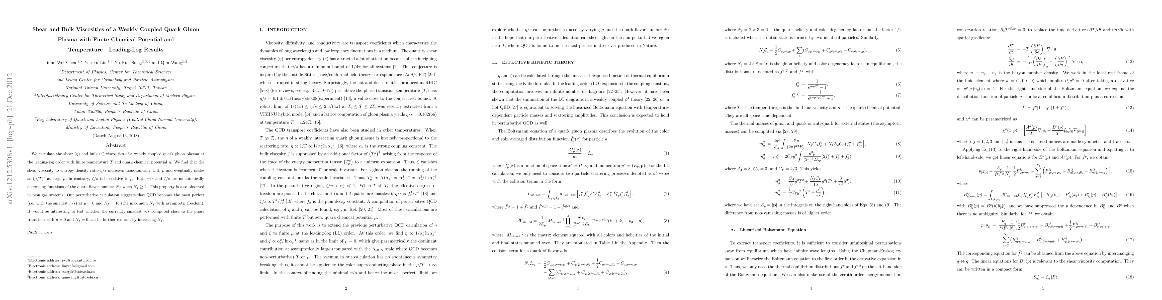 This paper calculates the shear and bulk viscosities of a weakly coupled quark gluon plasma at finite temperature and chemical potential, finding that the shear viscosity ratio eta/s increases with chemical potential and decreases with quark flavor number, while the bulk viscosity ratio zeta/s is unaffected by chemical potential. The study suggests QCD's smallest eta/s occurs at mu=0 and N_f=16.