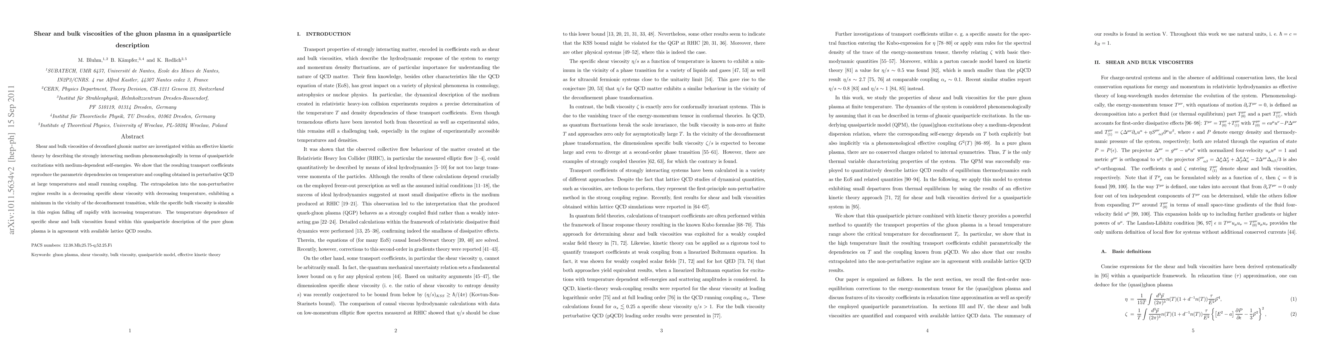 This paper investigates the shear and bulk viscosities of gluon plasma using an effective kinetic theory with quasiparticle excitations, showing that these transport coefficients match perturbative QCD results at high temperatures. It finds a decreasing shear viscosity with falling temperature, with a minimum near the deconfinement transition, and a sizeable bulk viscosity that diminishes with increasing temperature, aligning with lattice QCD findings.