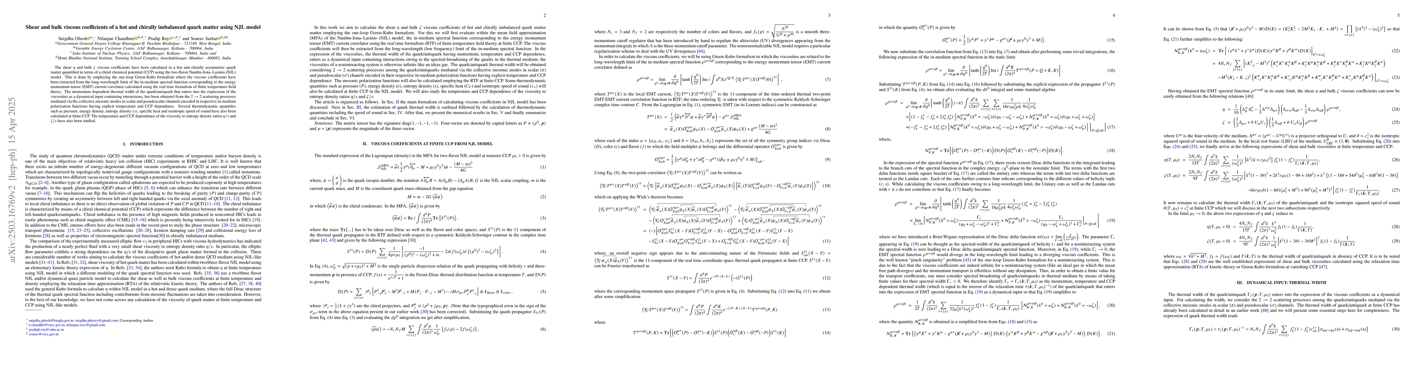 The paper presents a detailed calculation of shear and bulk viscosities in hot and chirally imbalanced quark matter using the NJL model, incorporating the effects of chiral chemical potential and mesonic interactions.