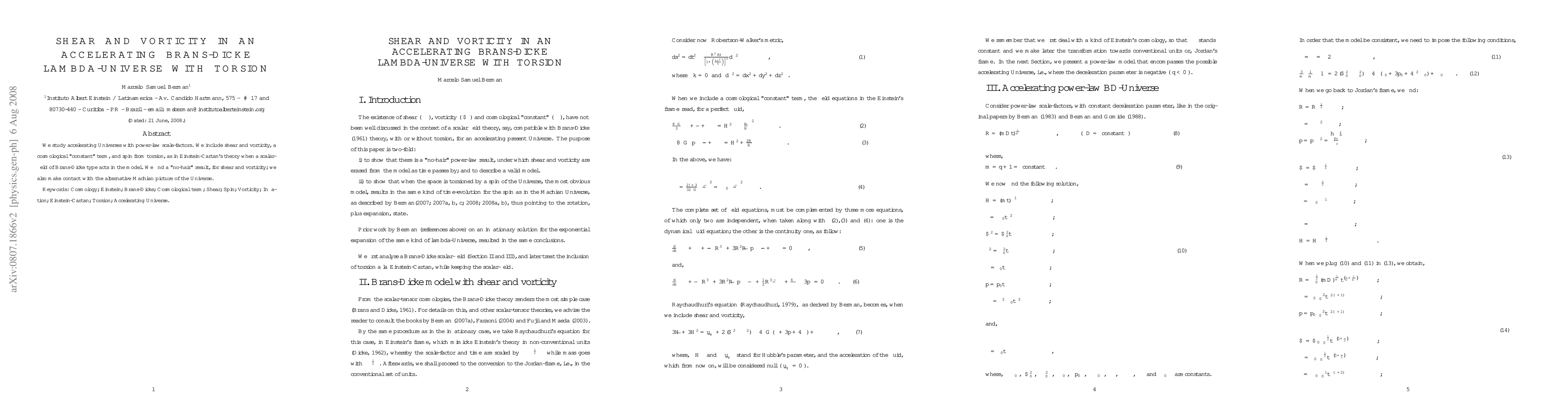 The paper presents a detailed analysis of shear, vorticity, torsion, and a cosmological constant in an accelerating Brans-Dicke universe, providing a 'no-hair' theorem for shear and vorticity.